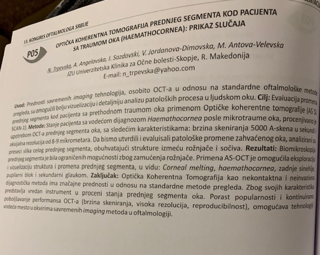 OPTICKA KOHERENTNA TOMOGRAFIJA PREDNJEG SEGMENTA KOD PACIJENTA SA TRAUMOM OKO (HAEMATOCORNEA): PRIKAZ SLUCAJA