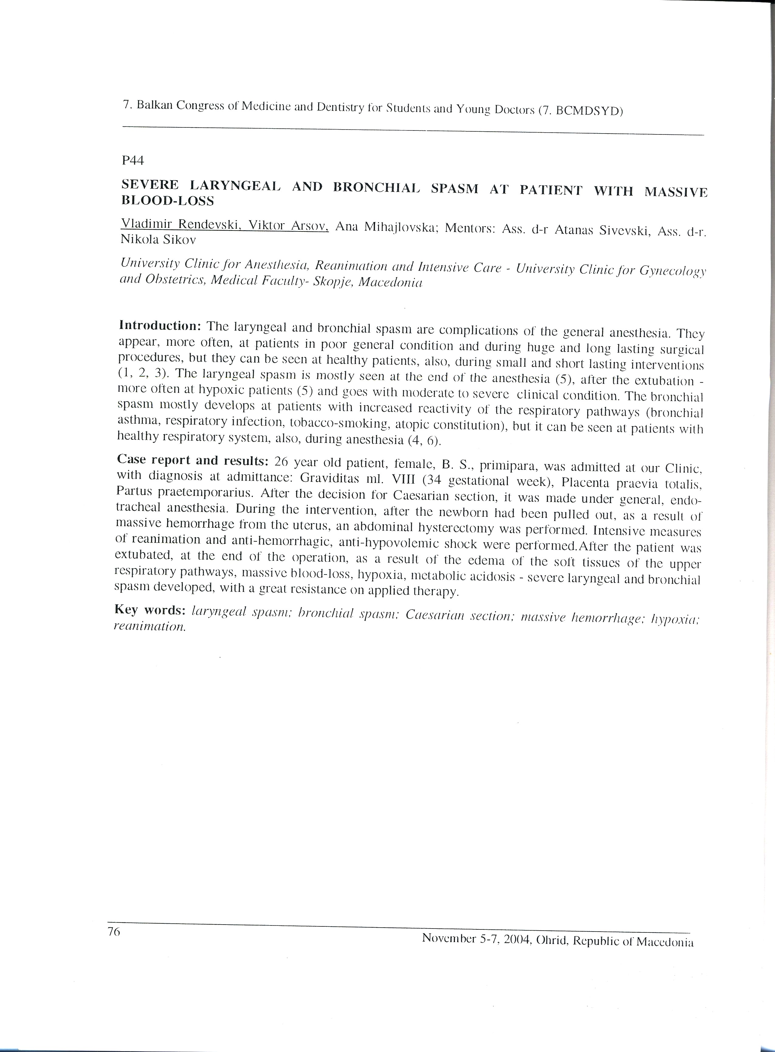 Severe laryngeal and bronchial spasm at patient with massive blood-loss.