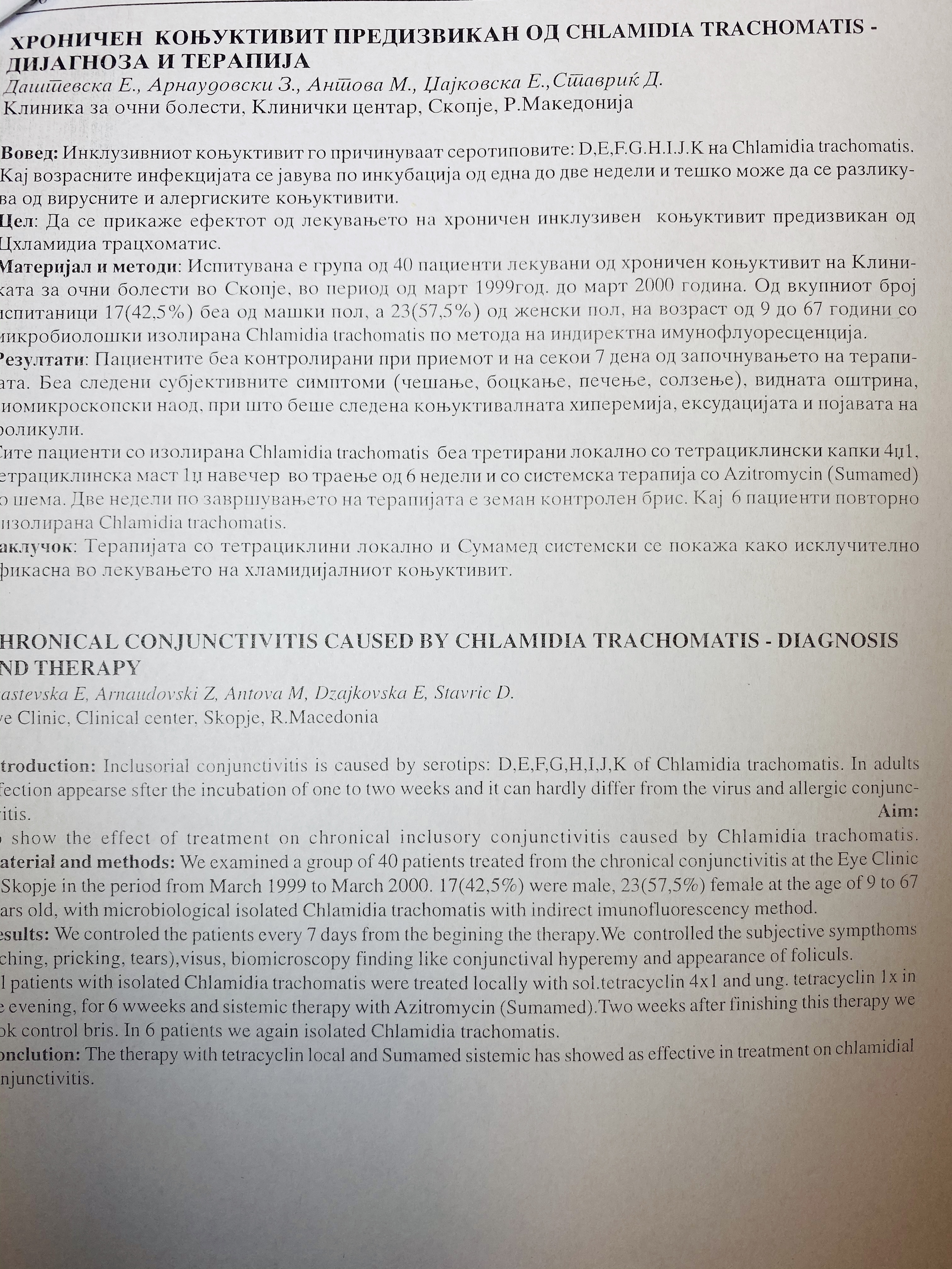 Хроничен коњуктивит предизвикан од Chlamidia trachomatis - дијагноза и терапија