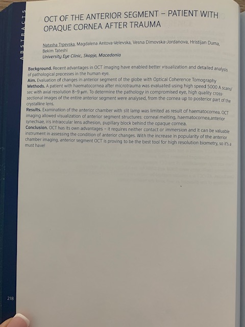 OCT OF ANTERIOR SEGMENT - PATIENTS WITH OPAQUE CORNEA AFTER TRAUMA