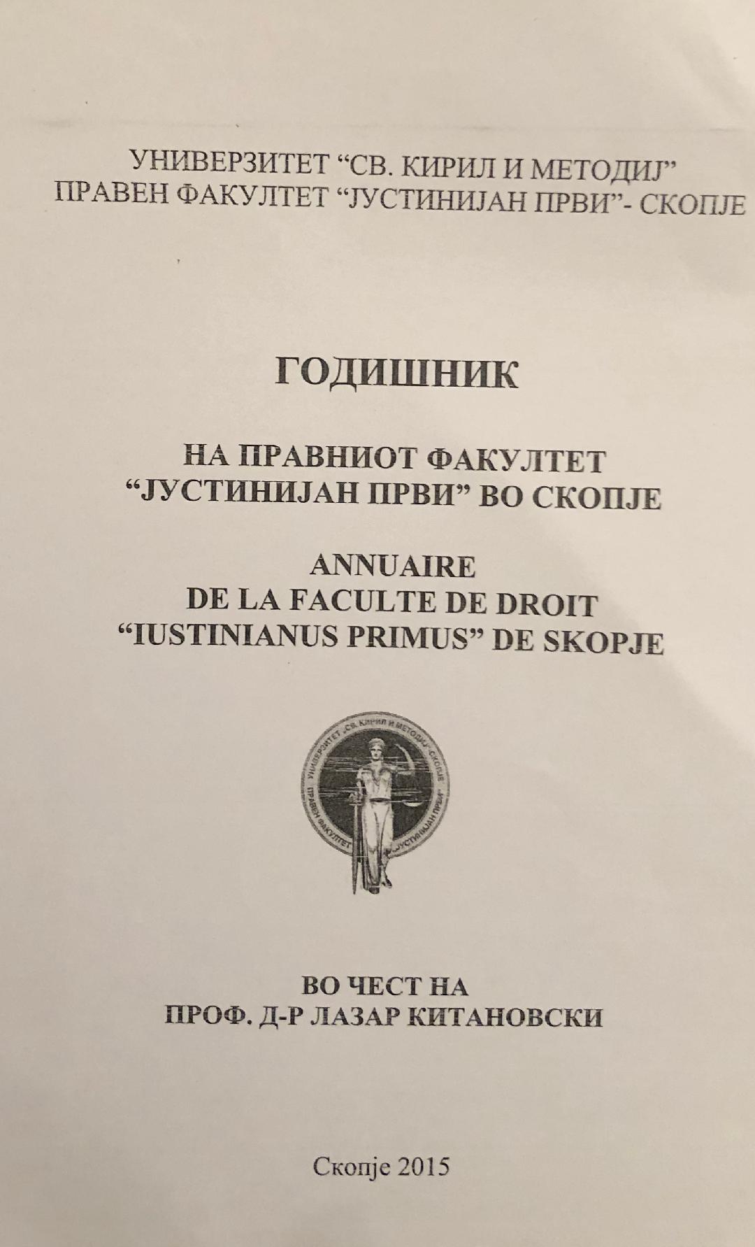 Насловна Годишник Правен факултет посветен на Лазар Китановски (2015) .jpg