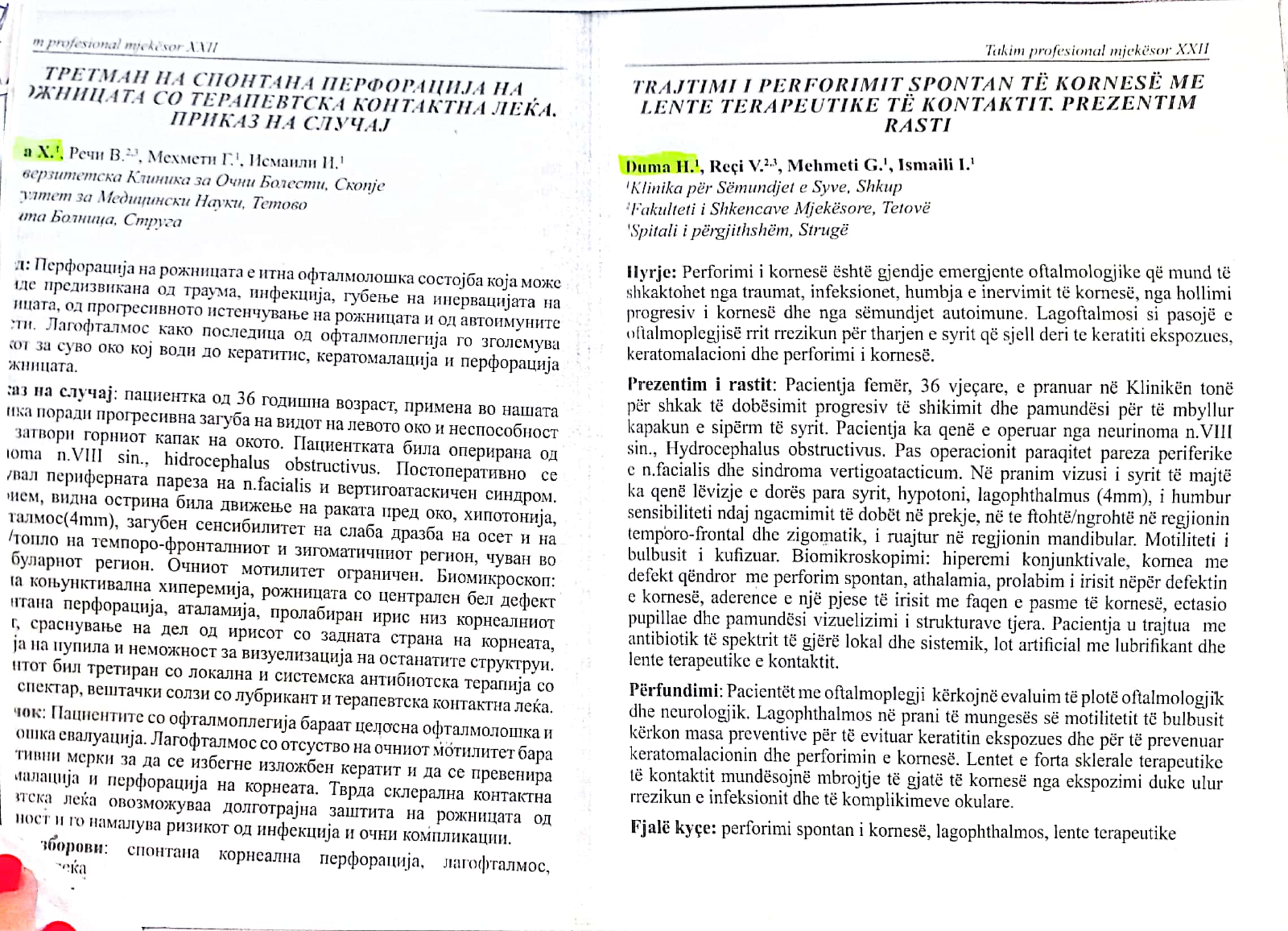 Третман на спонтана перфорација на рожницата со терапевтска контактна леќа - приказ на случај