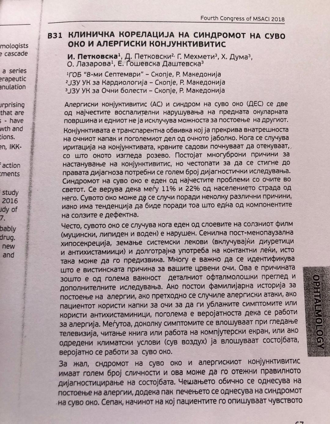 Клиничка корелација на синдромот на суво око и алергиски конјунктивитис