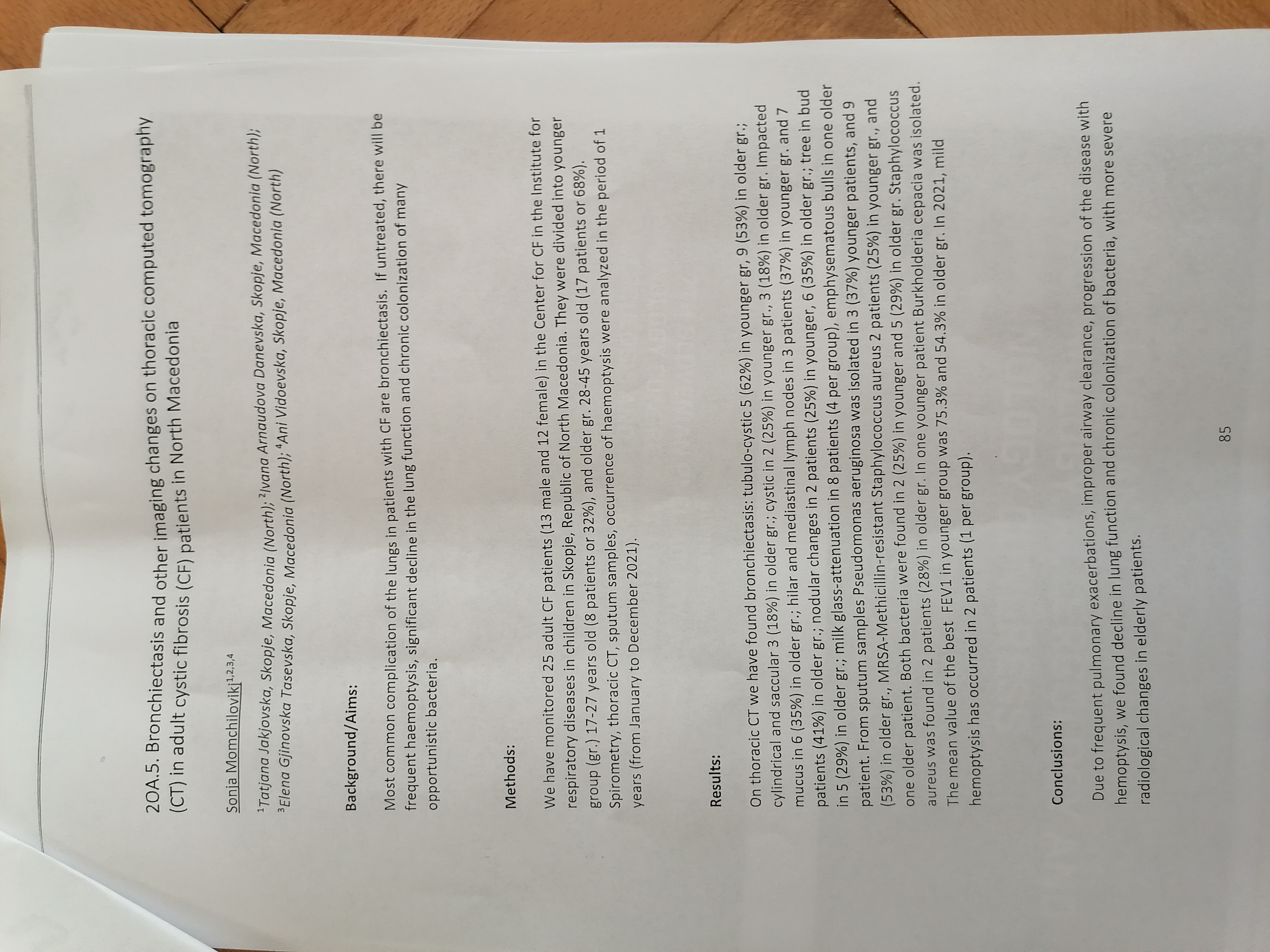 Brobchiectasis and other imaging changes on thoracic computed tomography in adult cystic fibrosis patients in North Macedonia