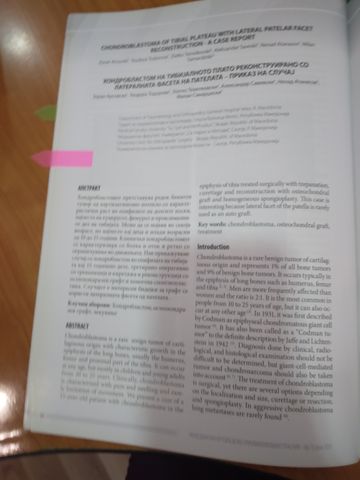 Chondroblastoma of tibial plateau with lateral patelar facet reconstruction-A case report