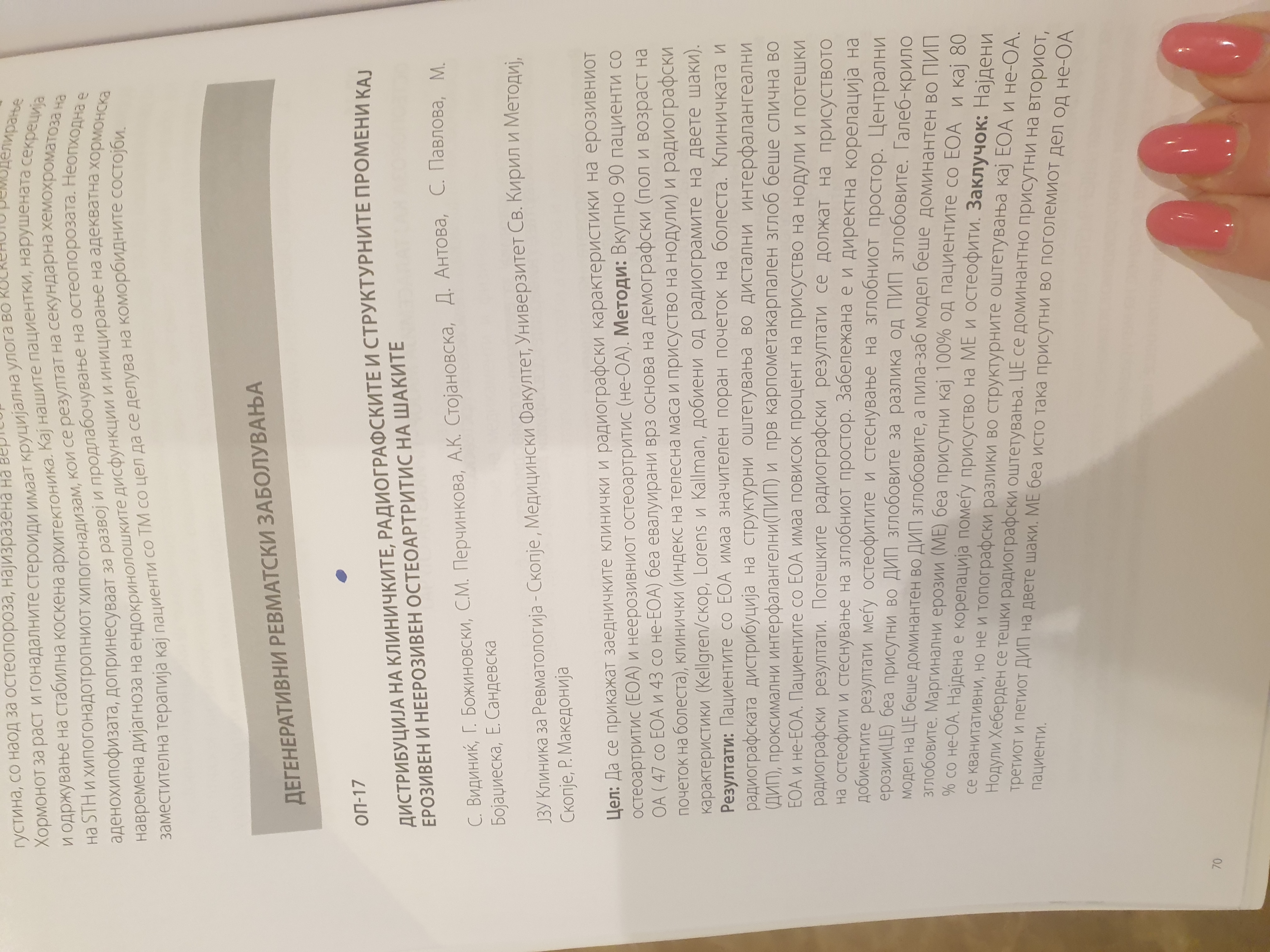 ДИСТРИБУЦИЈА НА КЛИНИЧКИТЕ, РАДИОГРАФСКИТЕИ СТРУКТУРНИТЕ ПРОМЕНИ КАЈ ЕРОЗИВЕН И НЕЕРОЗИВЕН ОСТЕОАРТРИТИС НА ШАКИТЕ