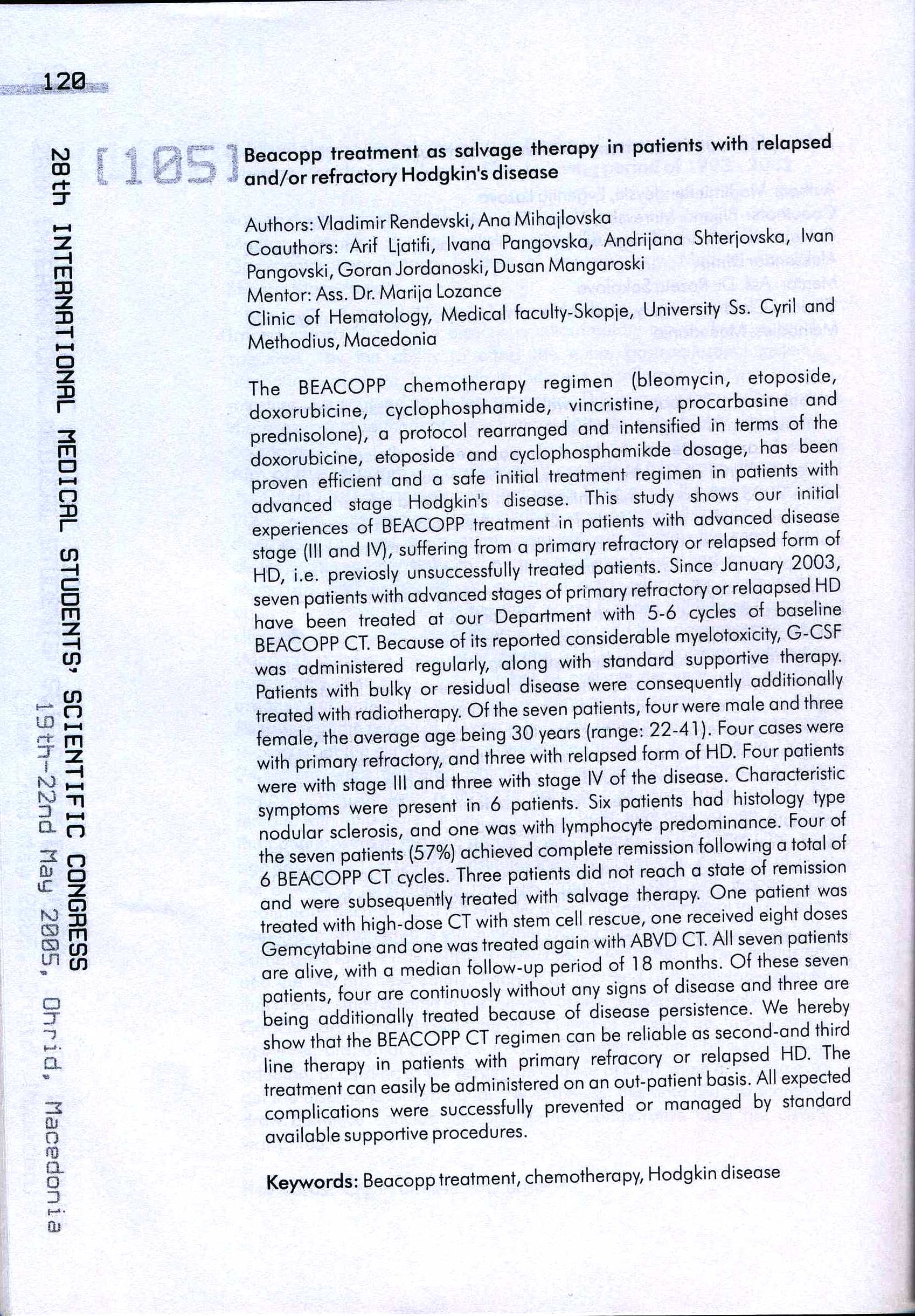 Beacopp treatment as salvage therapy in patients with relapsed and/or refractory Hodgking’s disease