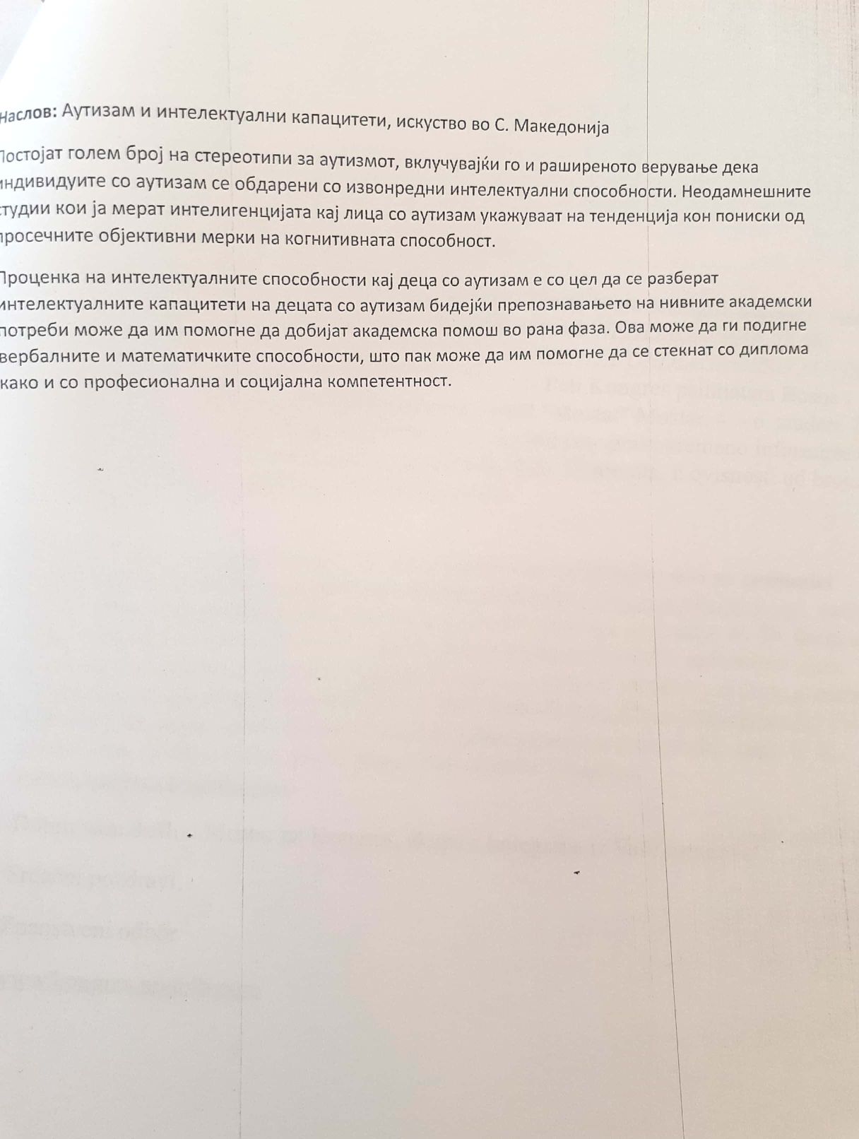 Аутизам и интелектуални капациттеит, искуство во С.Македонија