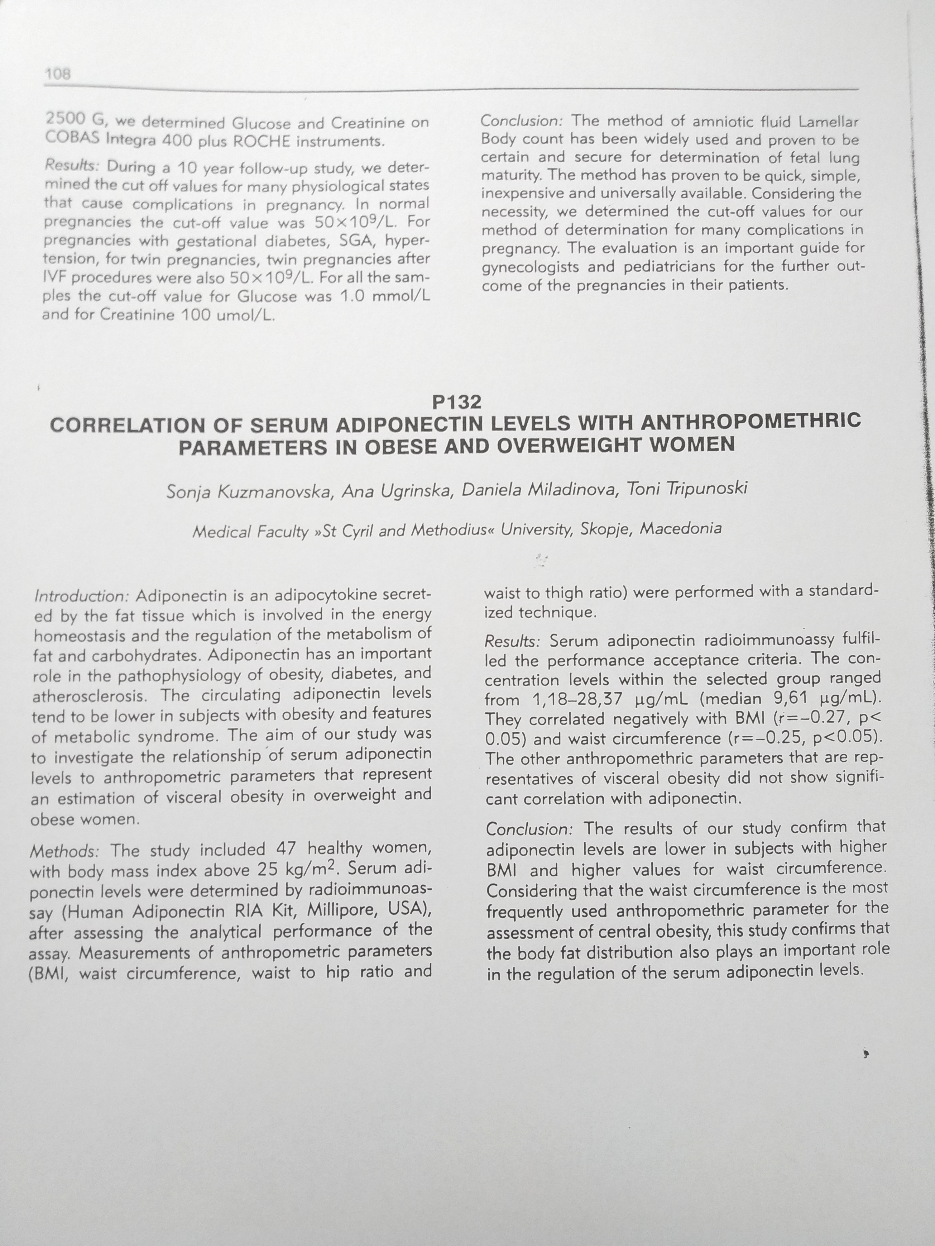 Correlation of serum adiponectin levels with antropomethric parameters in obese and overweight women