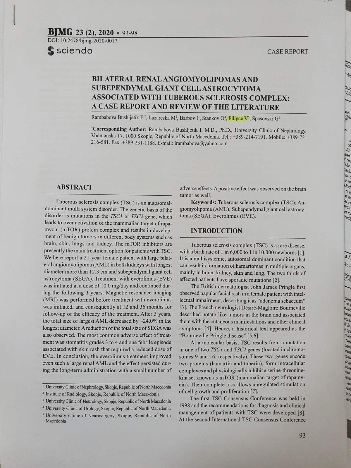Bilateral renal angiomyoвipomas and subependymal giant cell astrocytoma associated with tuberous sclerosis complex: A case report and review of the literature
