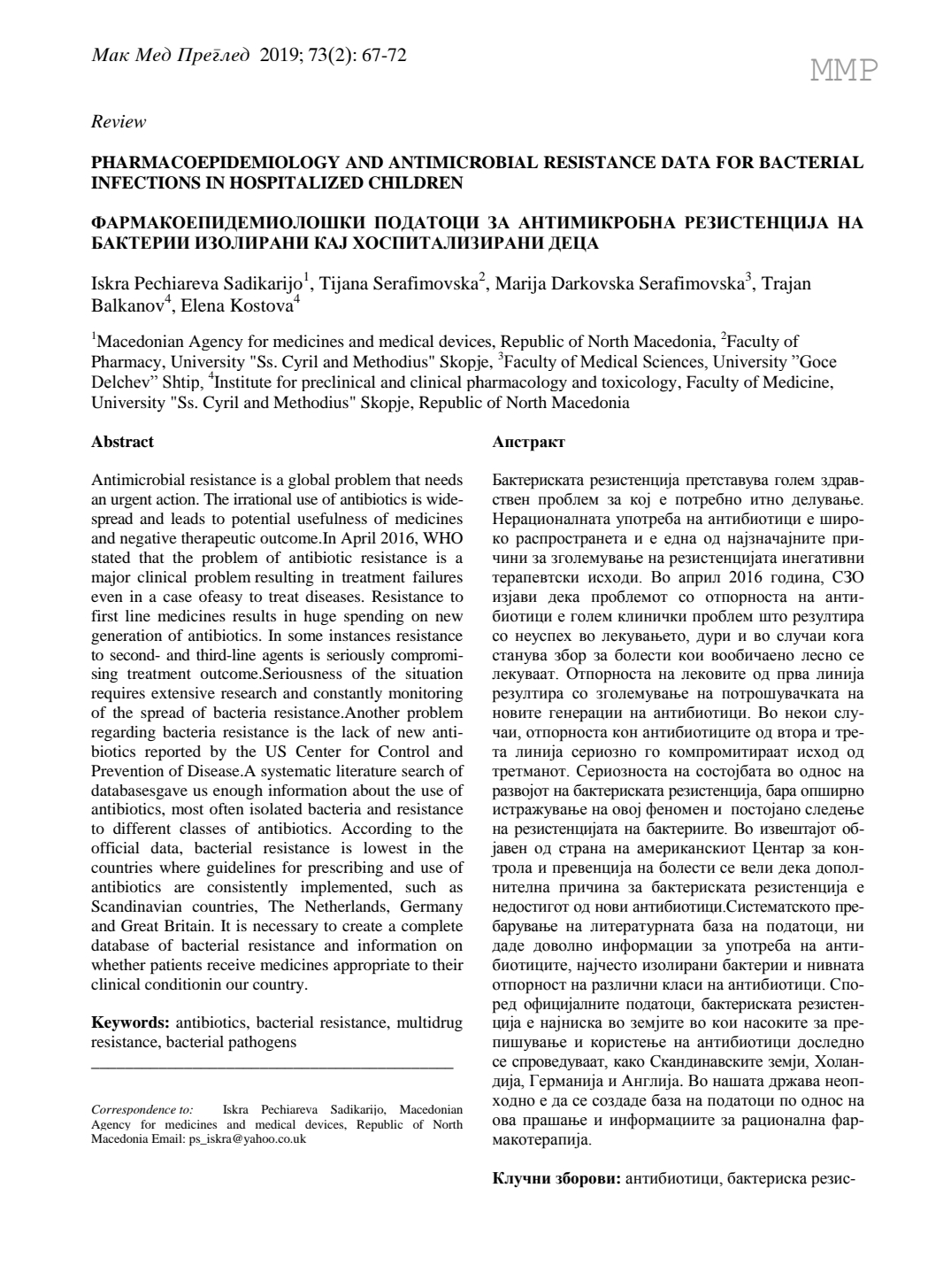Македонски Медицински Преглед = Macedonian Medical Review
