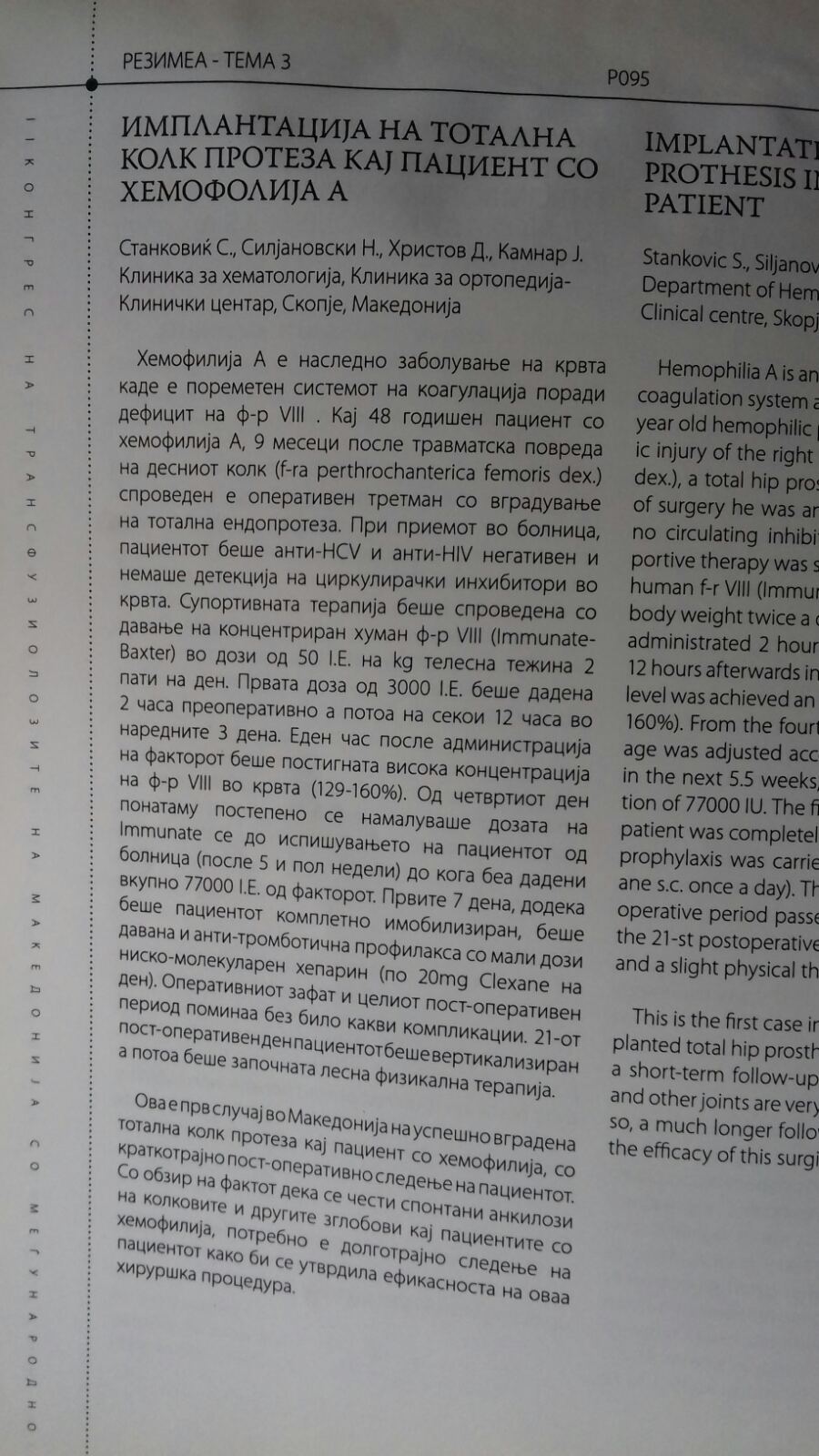 Имплантација на тотална колк протеза кај пациент со хемофилија А