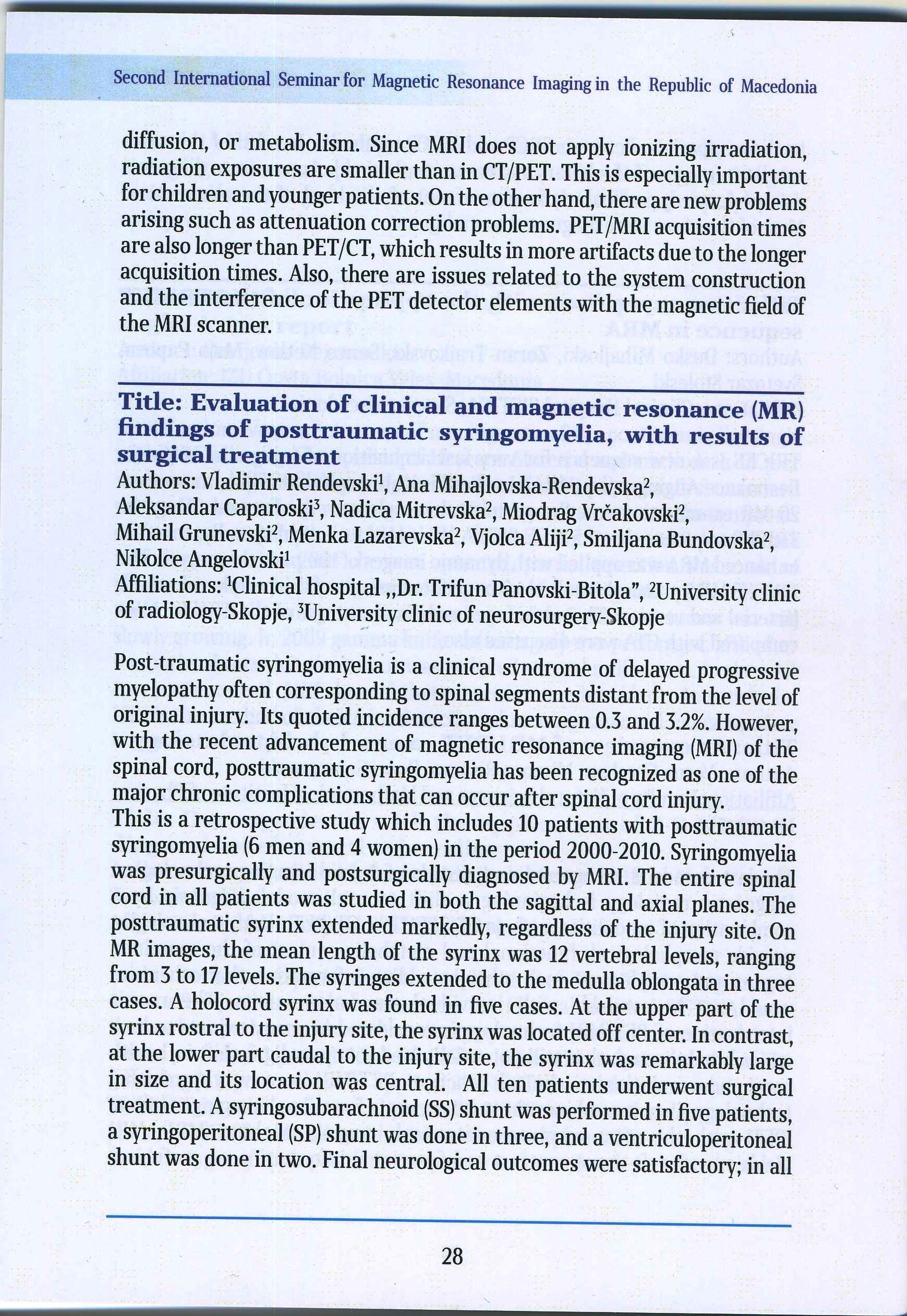 Evaluation of clinical and magnetic resonance (MR) findings of posttraumatic syringomyelia with results of surgical treatment.