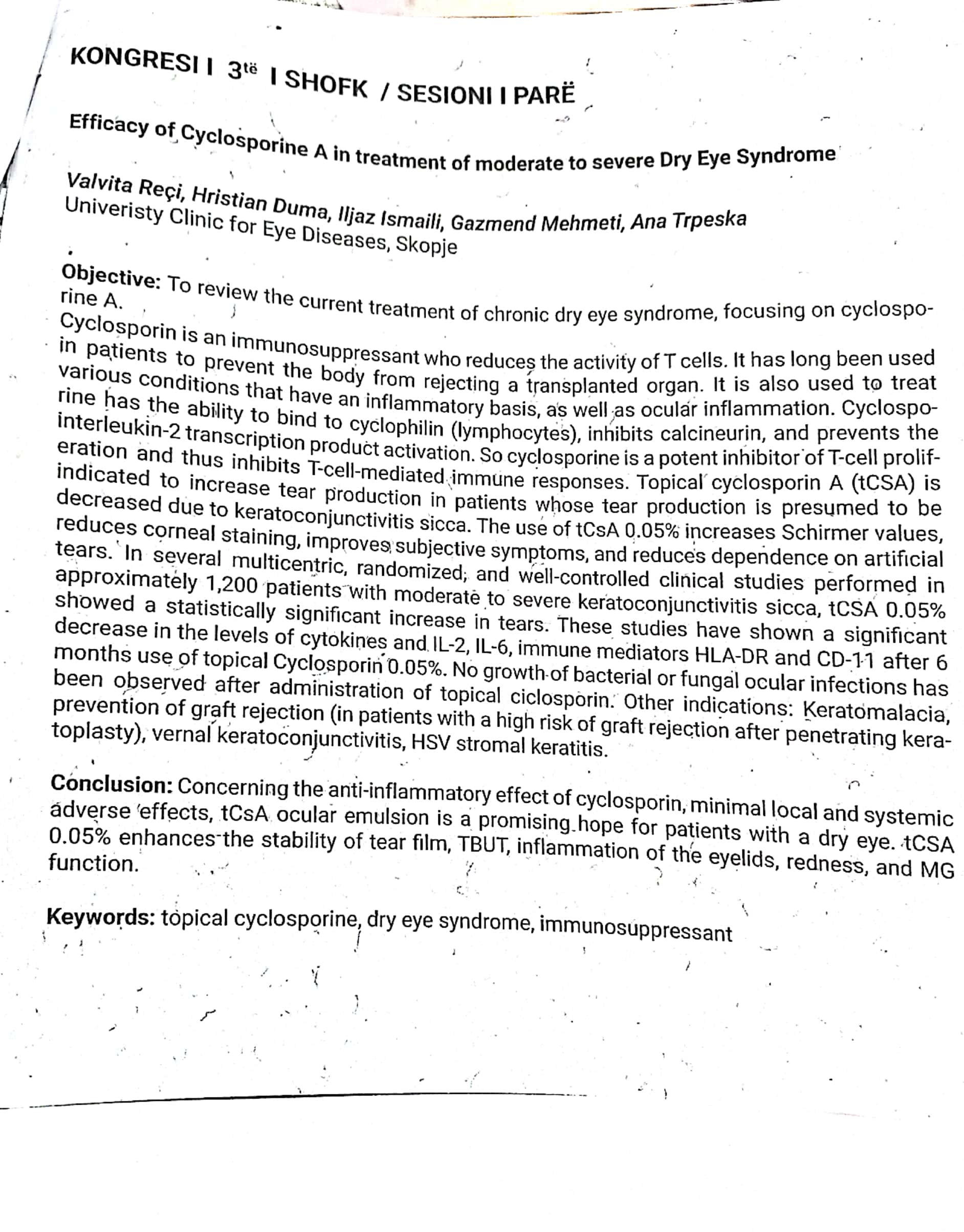 Efficacy of Cyclosporine A in treatment of moderate to severe Dry Eye Syndrome