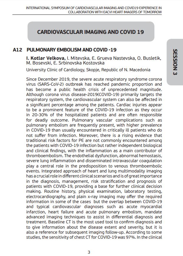 Moreover, there is a rising evidence that traditional risk factors for PE are not commonly encountered among the patients with COVID-19 infection but rather independent biological and clinical findings, with the inflammation as a main contributor of thromboembolism. The endothelial dysfunction, abnormal hemostasis, severe lung inflammation and disseminated intravascular coagulation play a central role in the predisposition to venous thromboembolic events.