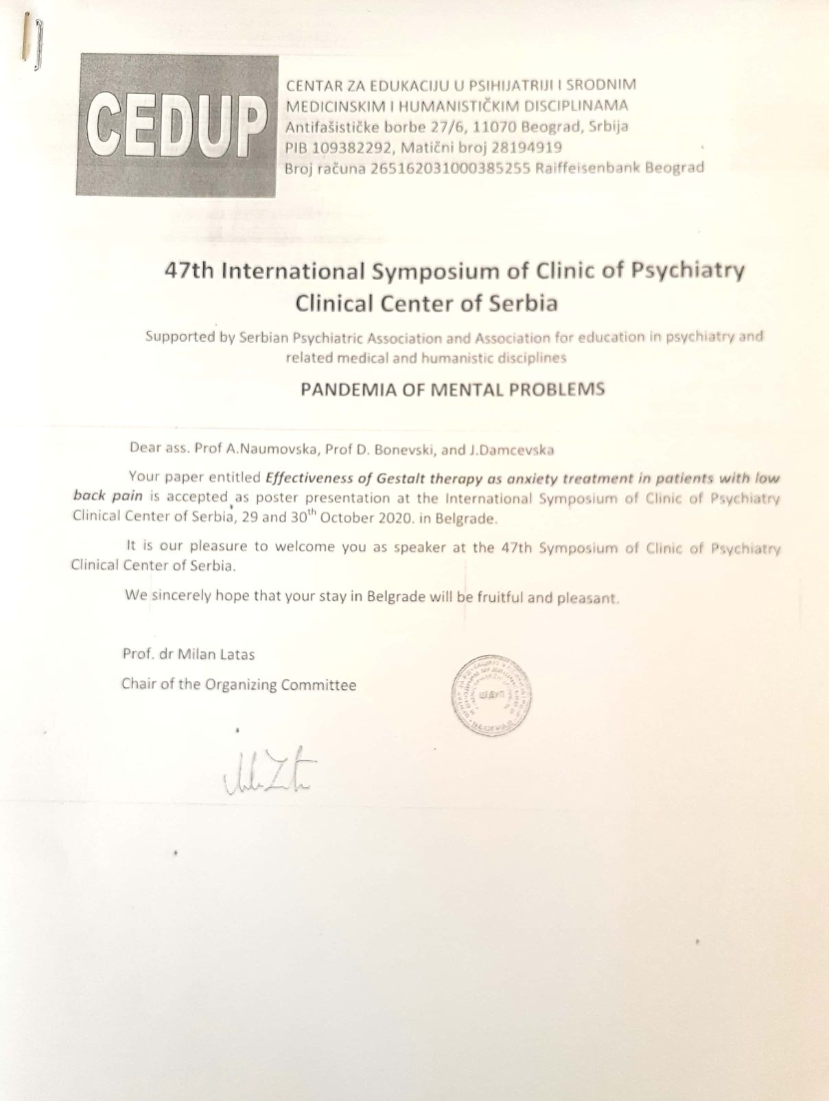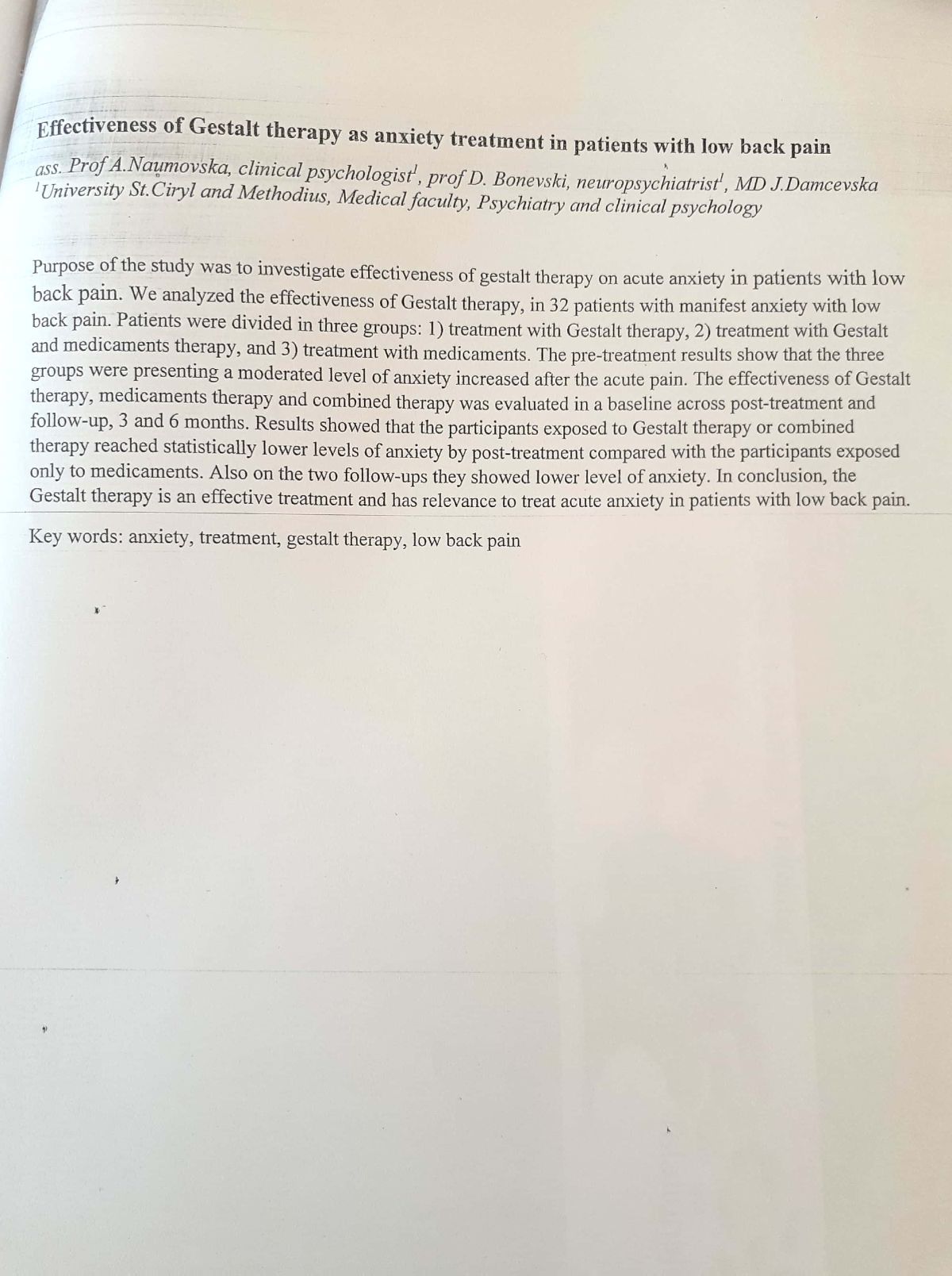 Effectiveness of gestalt therapy as anxiety treatment in patients with low back pain