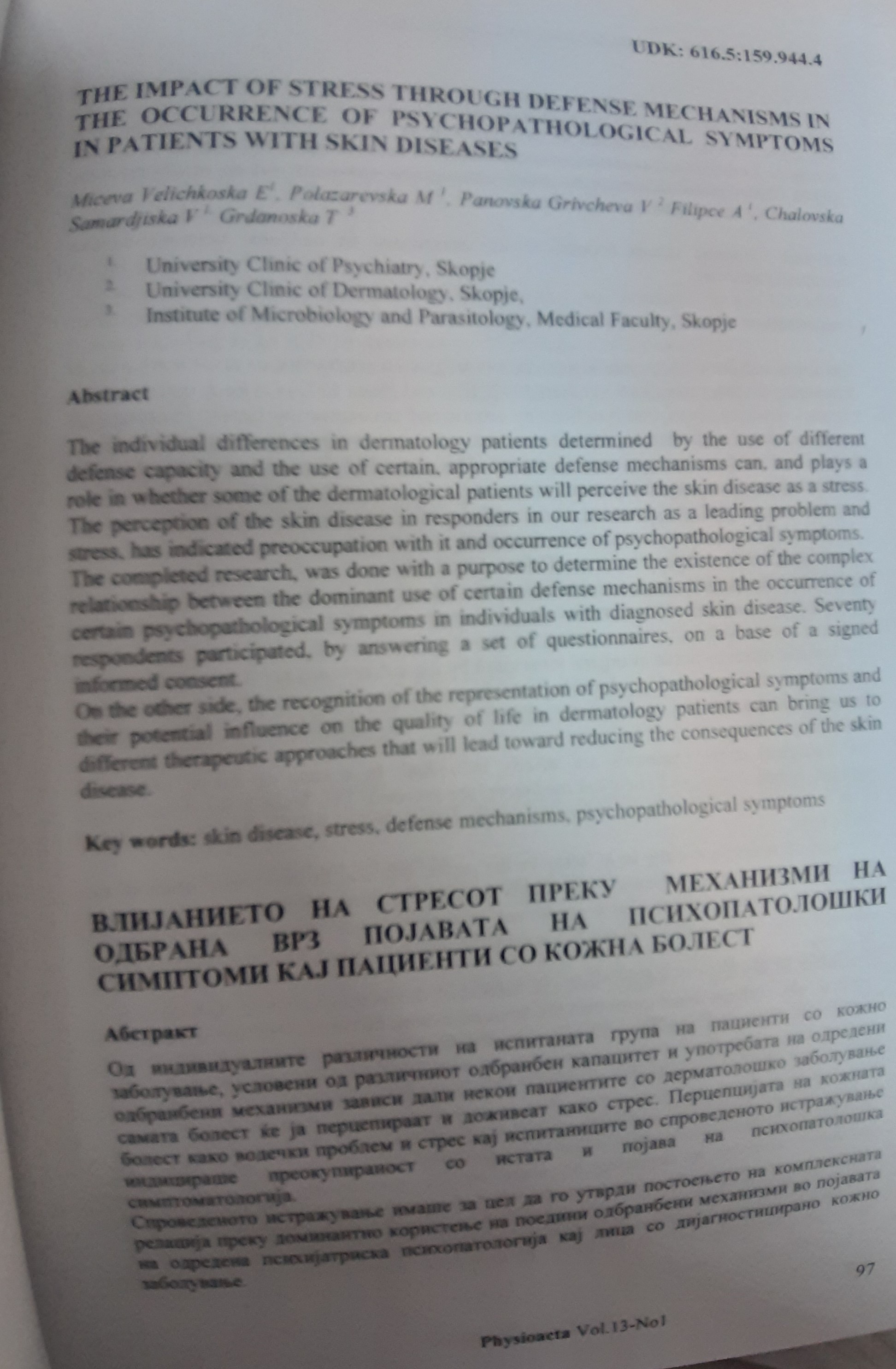 The impact of stress through defense mechanisms in the occurrence of psychopathological symptoms in patients with skin diseases