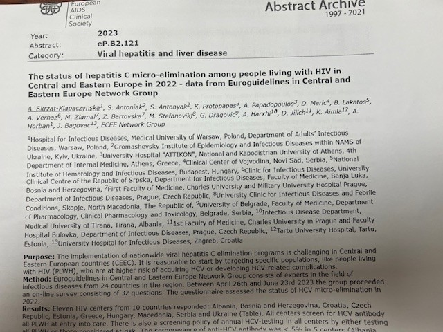 The status of hepatitis C micro-elimination among people living with HIV in Central and Eastern Europe in 2022 - data from Euroguidelines in Central and Eastern Europe Network Group A