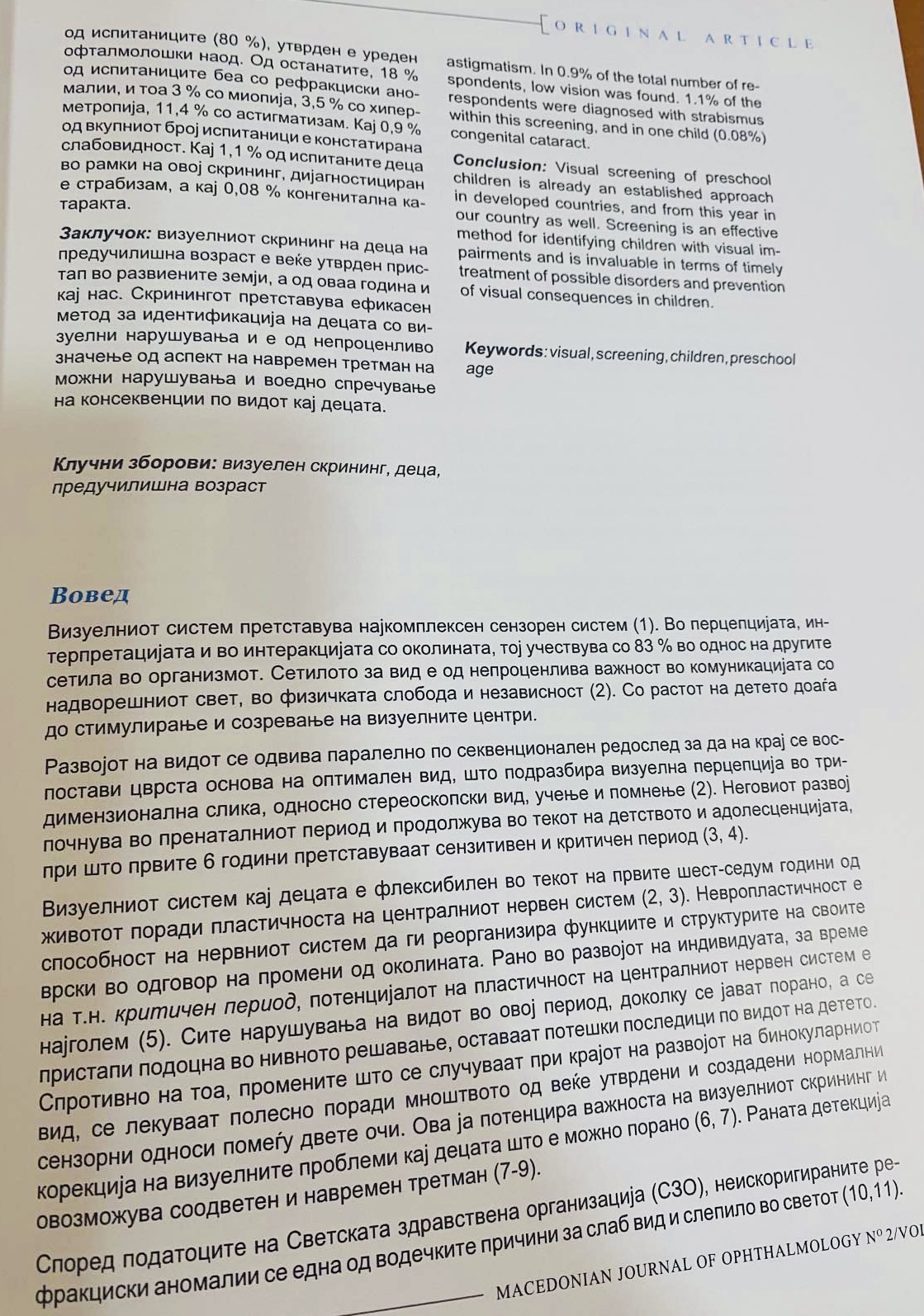 Значење на визуелниот скрининг кај деца на предучилишна возраст