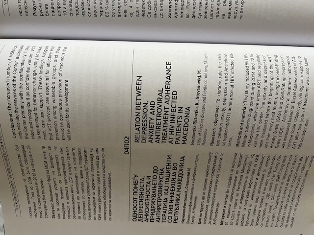 Односот помеѓу депресивнста, анксиозноста и придржувањето до антиретровирусната терапија кај пациенти со ХИВ инфекција во Република Македонија