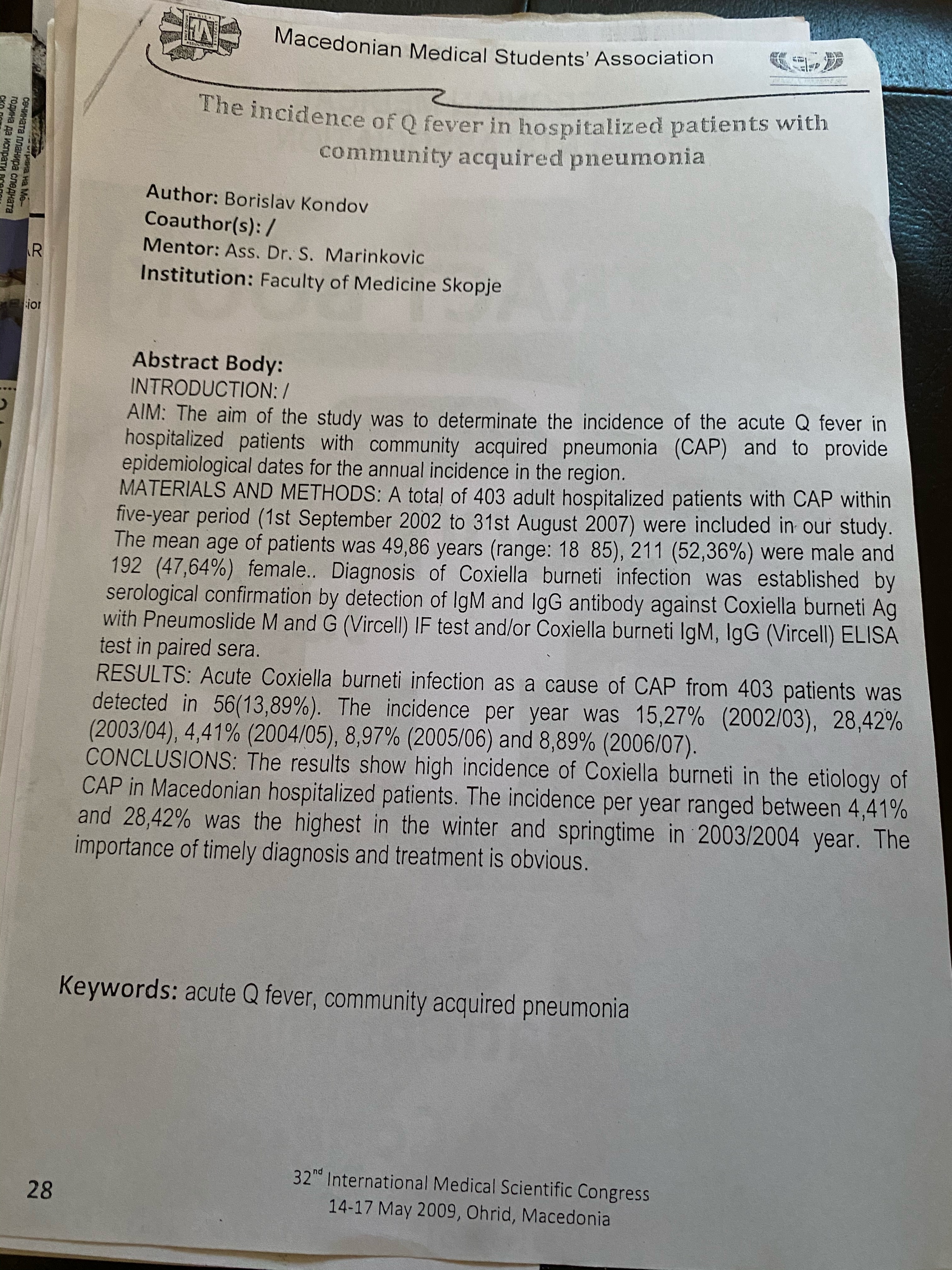 The incidence of Q fever in hospitalized patients with community acquired pneumonia