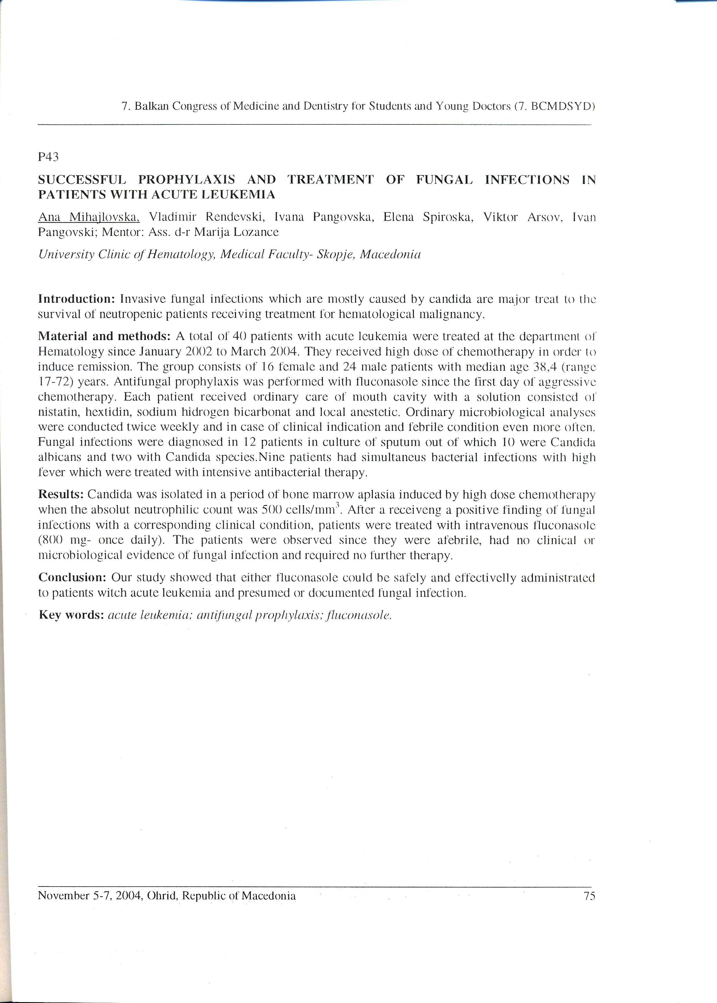 Successful prophylaxis and treatment of fungal infections in patients with acute leukemia.