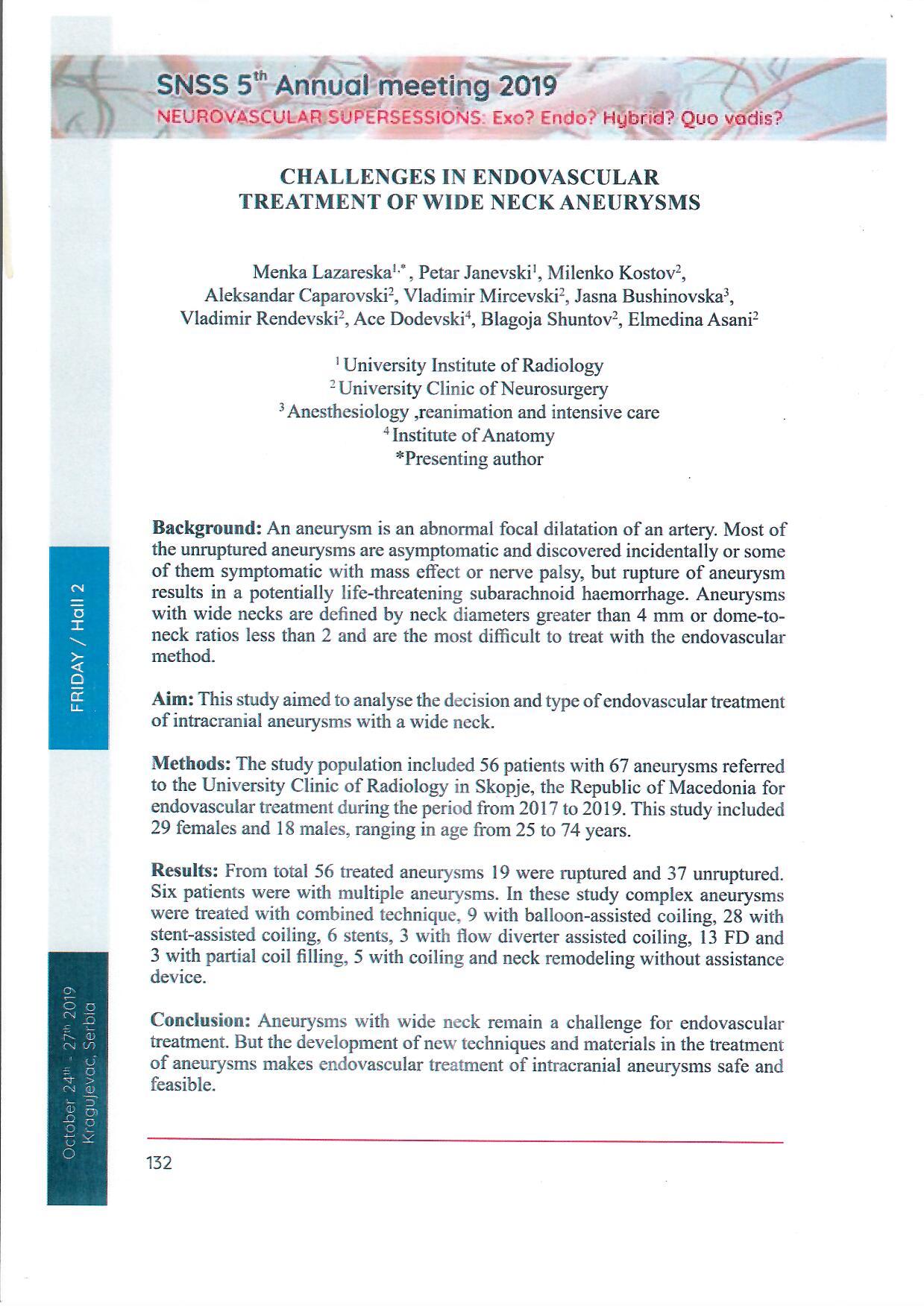 Challinges in endovascular treatment of wide neck aneurysms