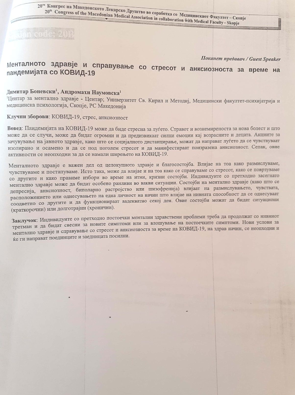 Менталното здравје и справување со стресот и анксиозноста за време на пандемијата со Ковид 19