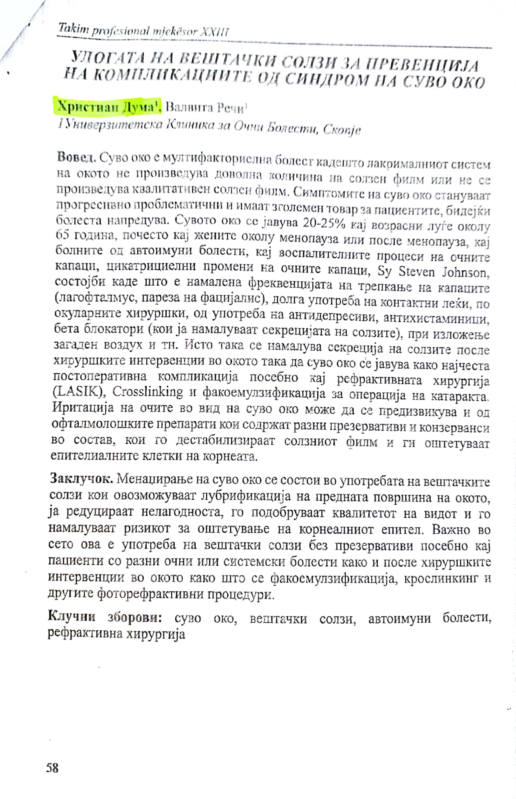 Улогата на вештачките солзи за превенција на компликациите од синдром на суво око
