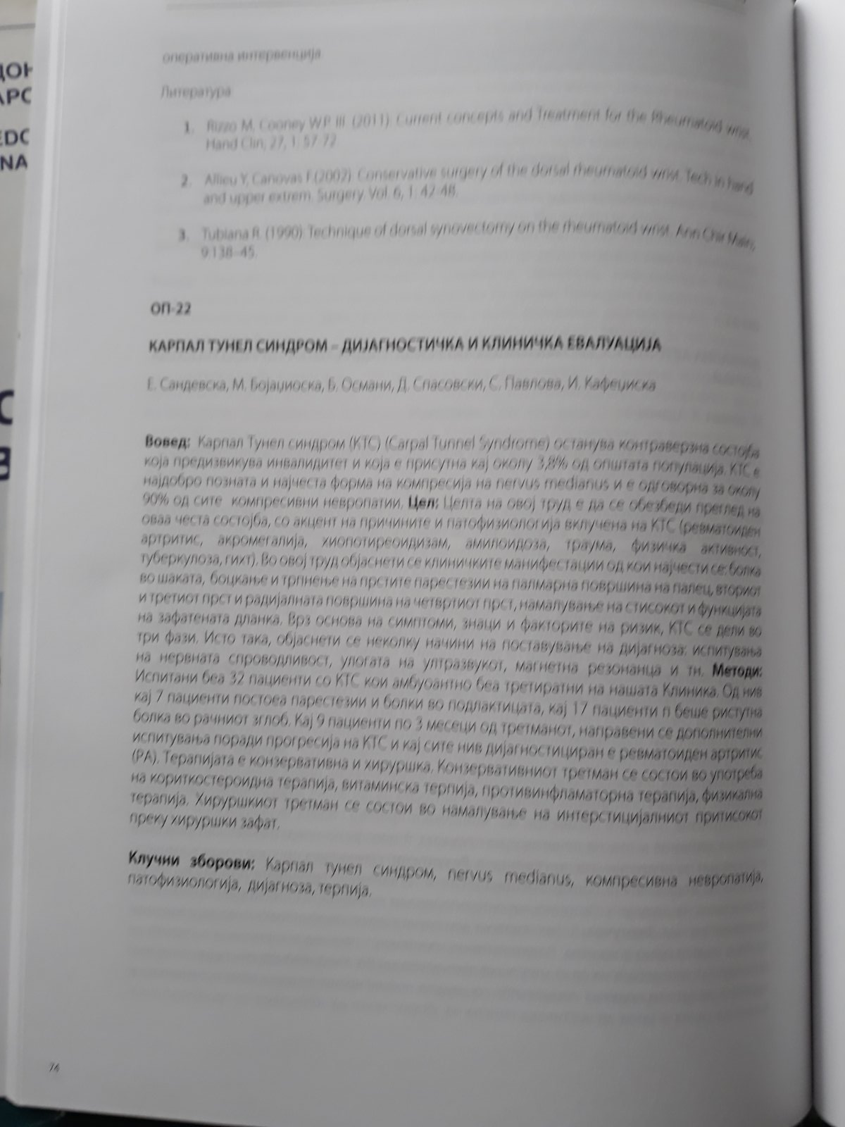 Карпал тунел синдром-дијагностичка и клиничка евалуација