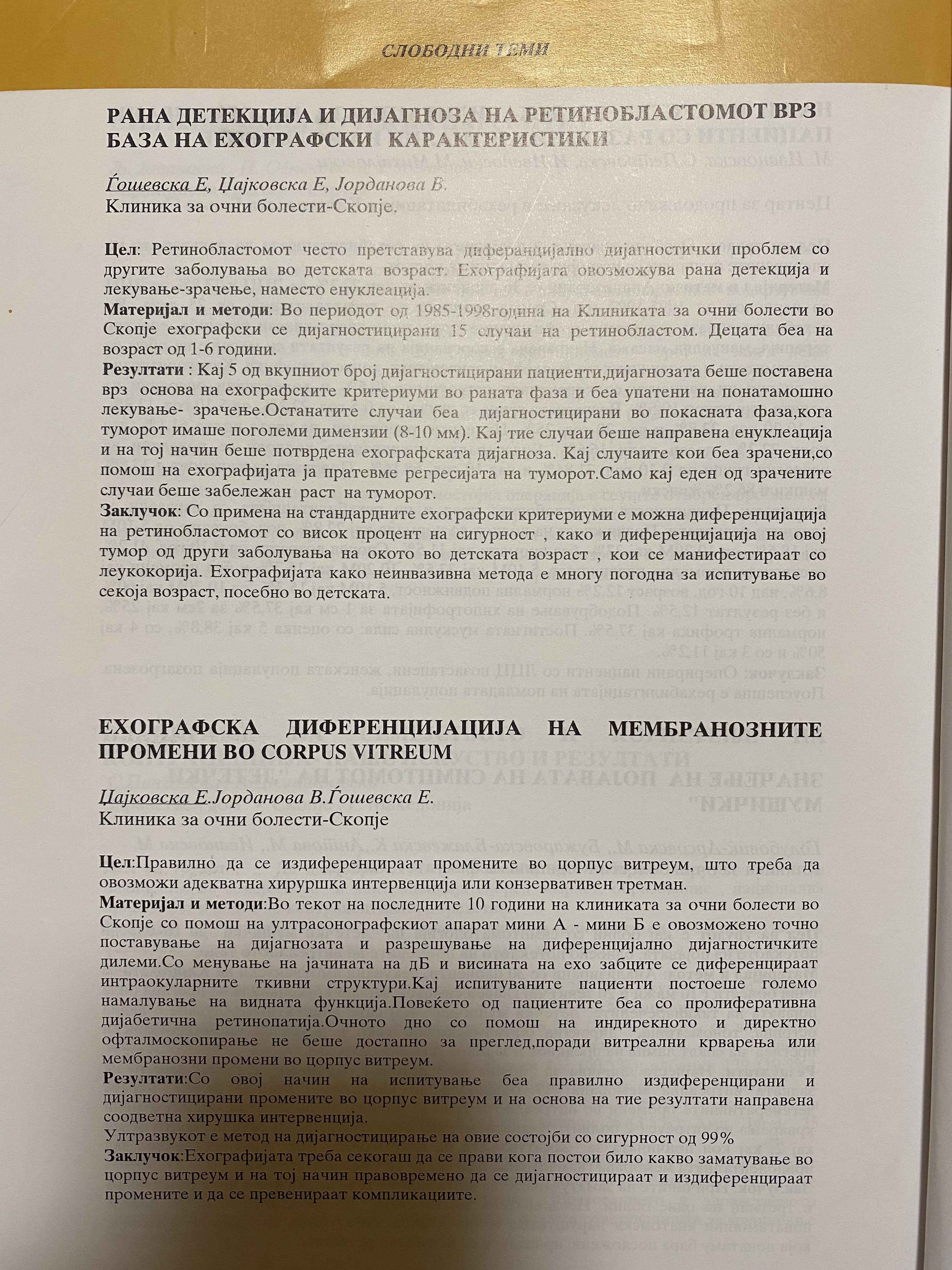 Рана детекција и дијагноза на ретинобластомот врз база на ехографски карактеристики