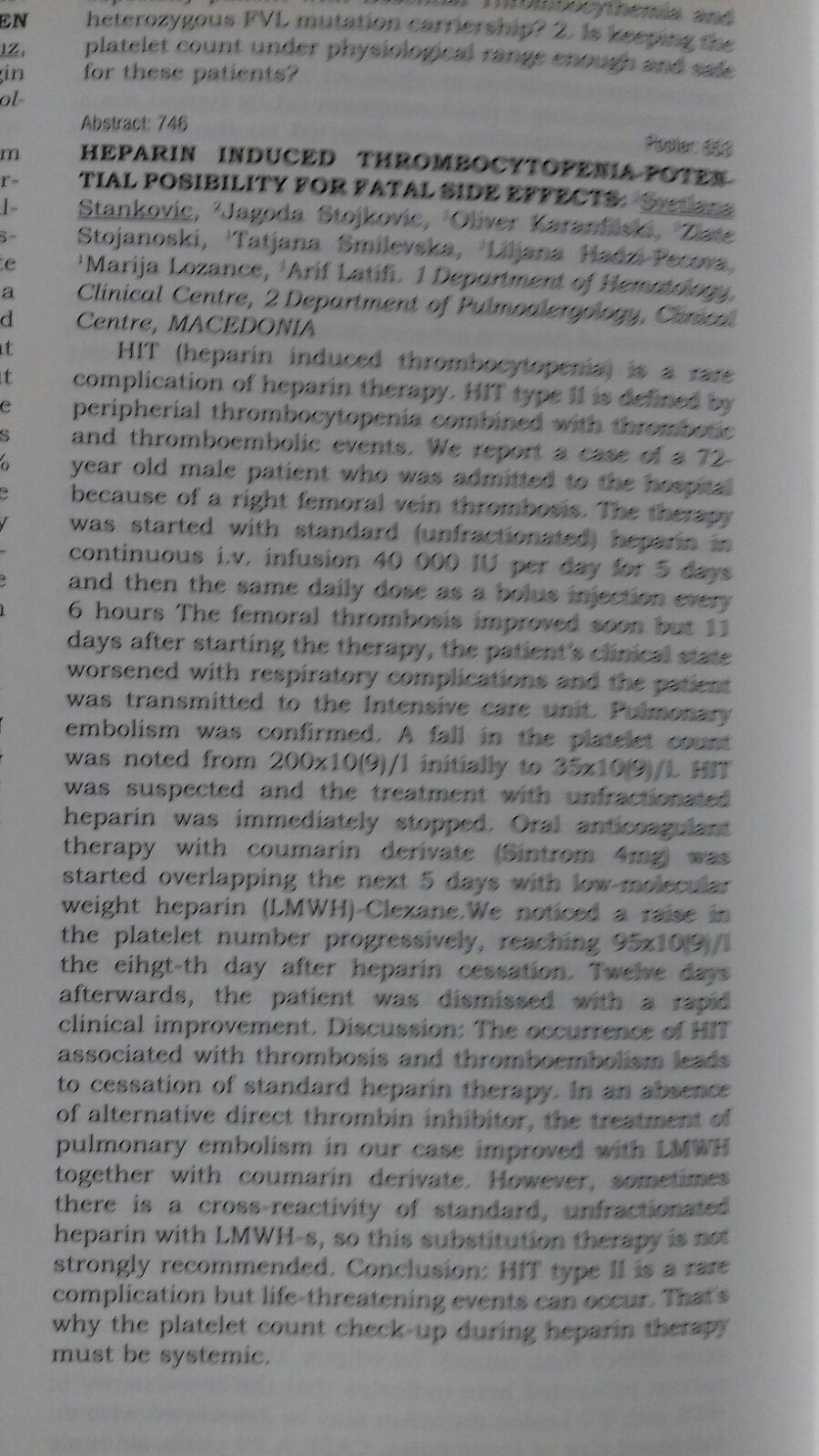 Heparin-induced thrombocytopenia-potential possibility for fatal side effects