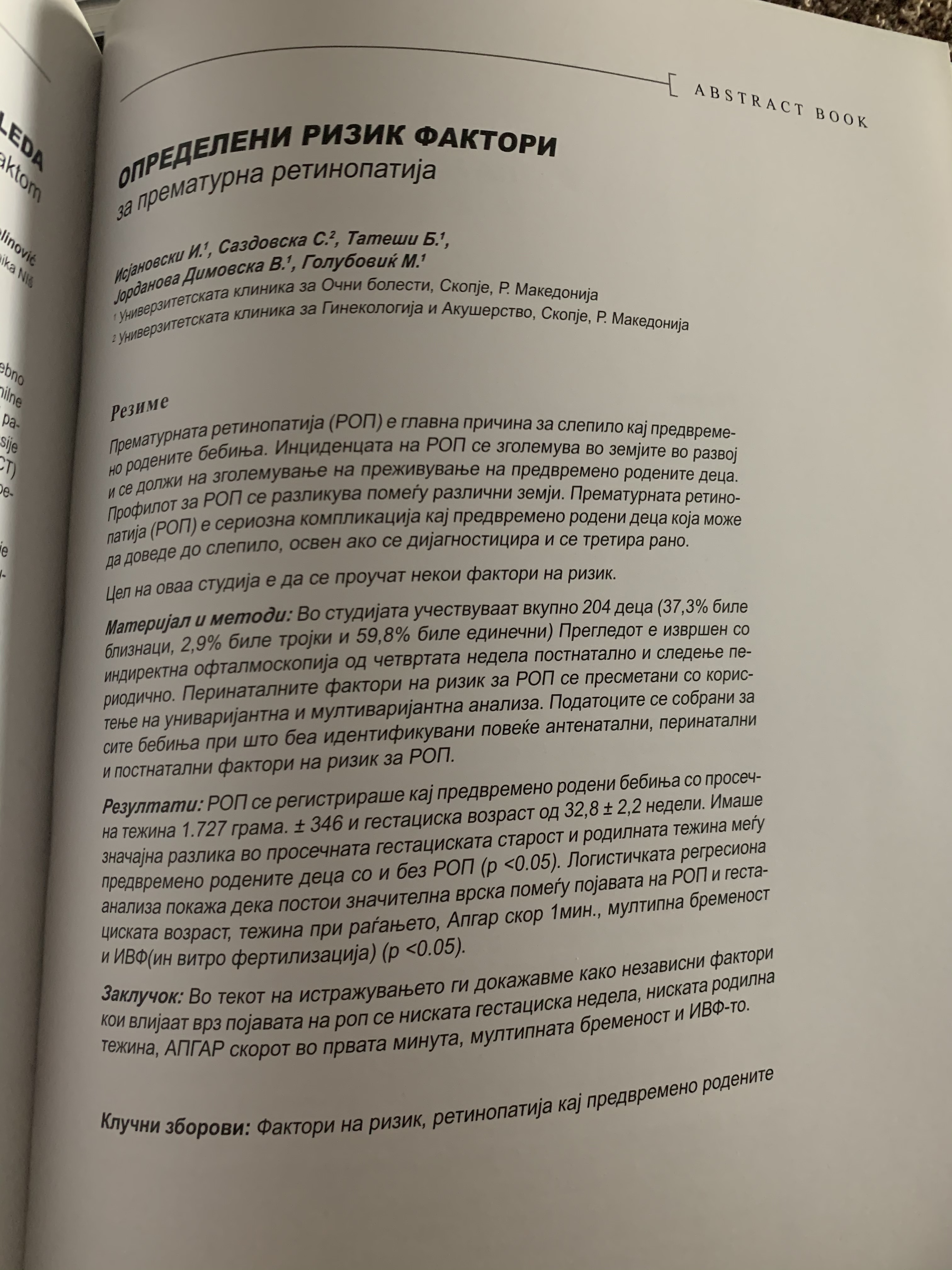 Определени ризик фактори за прематурна ретинопатија