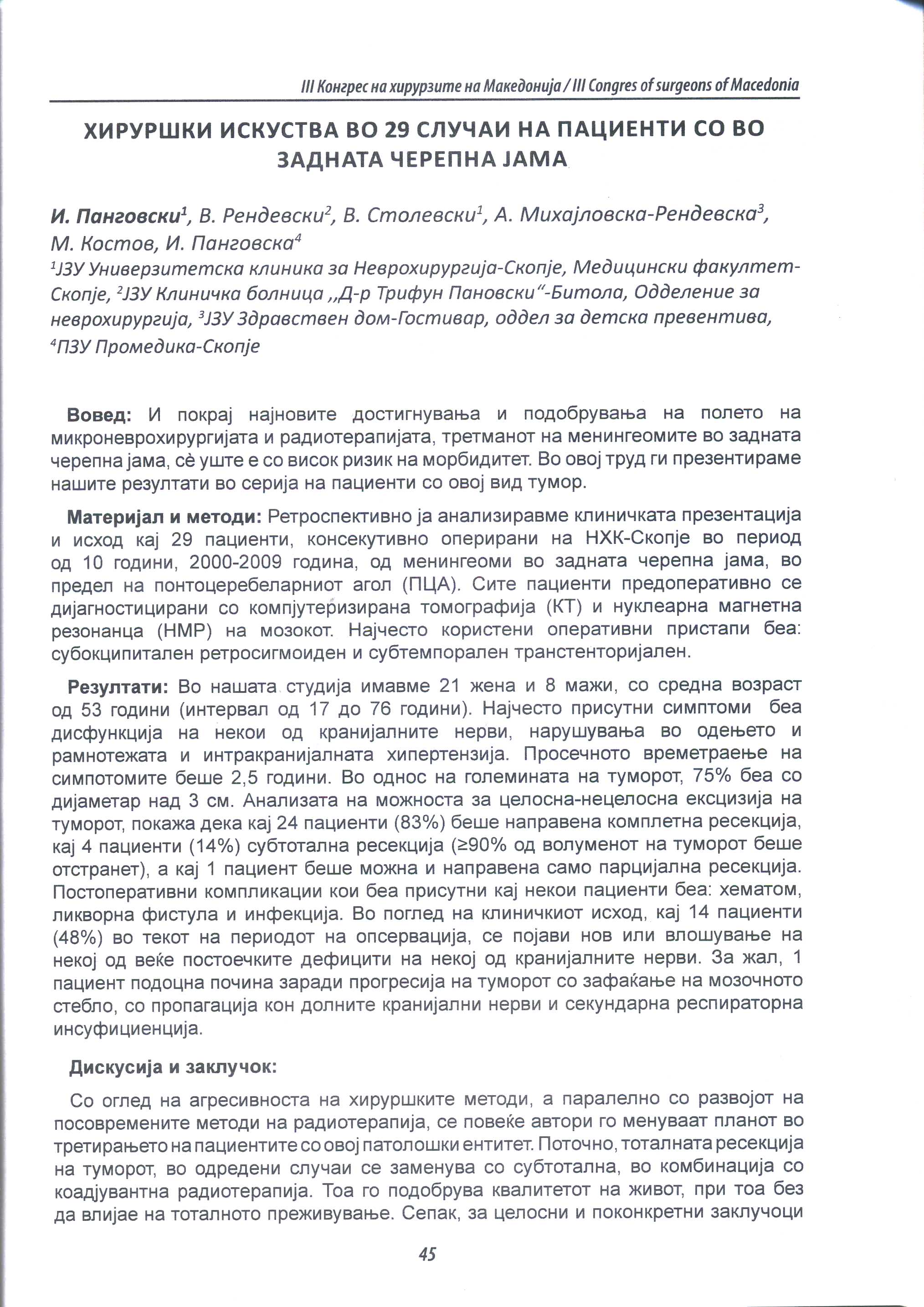 Surgical experience in 29 cases of patients with meningiomas in a posterior cerebral fossa