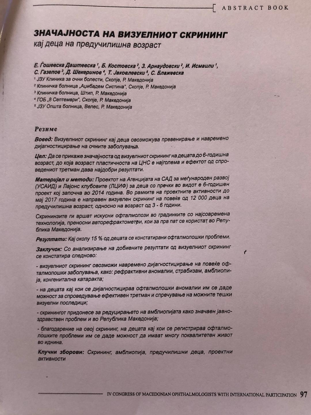 Значајноста на визуелниот скрининг кај деца на предучилишна возраст