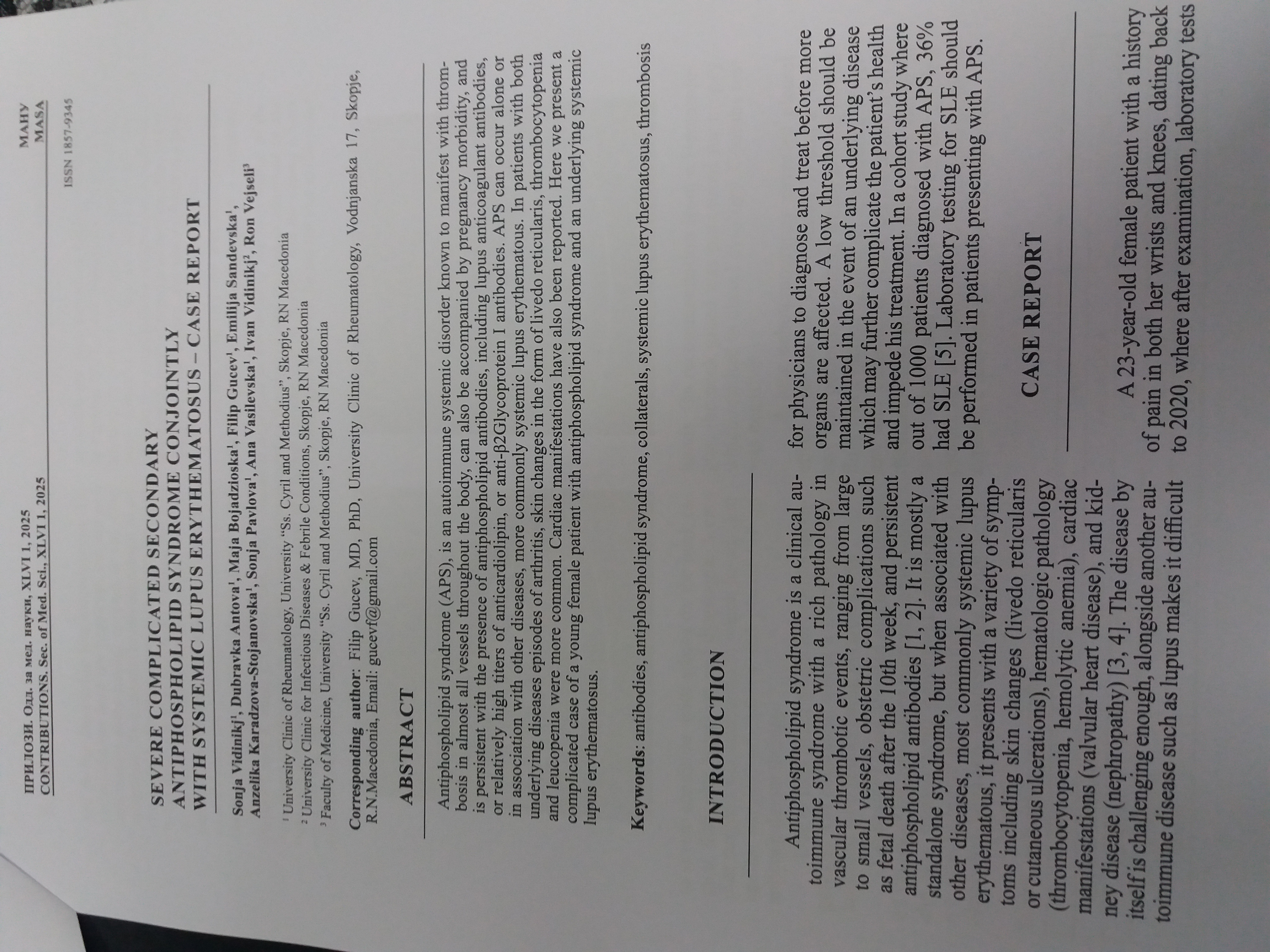 Antiphospholipid syndrome (APS), is an autoimmune systemic disorder known to manifest with thrombosis in almost all vessels throughout the body, can also be accompanied by pregnancy morbidity, and is persistent with the presence of antiphospholipid antibodies, including lupus anticoagulant antibodies, or relatively high titers of anticardiolipin, or anti-β2Glycoprotein I antibodies. APS can occur alone or in association with other diseases, more commonly systemic lupus erythematous. In patients with both underlying diseases episodes of arthritis, skin changes in the form of livedo reticularis, thrombocytopenia and leucopenia were more common. Cardiac manifestations have also been reported. Here we present a complicated case of a young female patient with antiphospholipid syndrome and an underlying systemic lupus erythematosus.