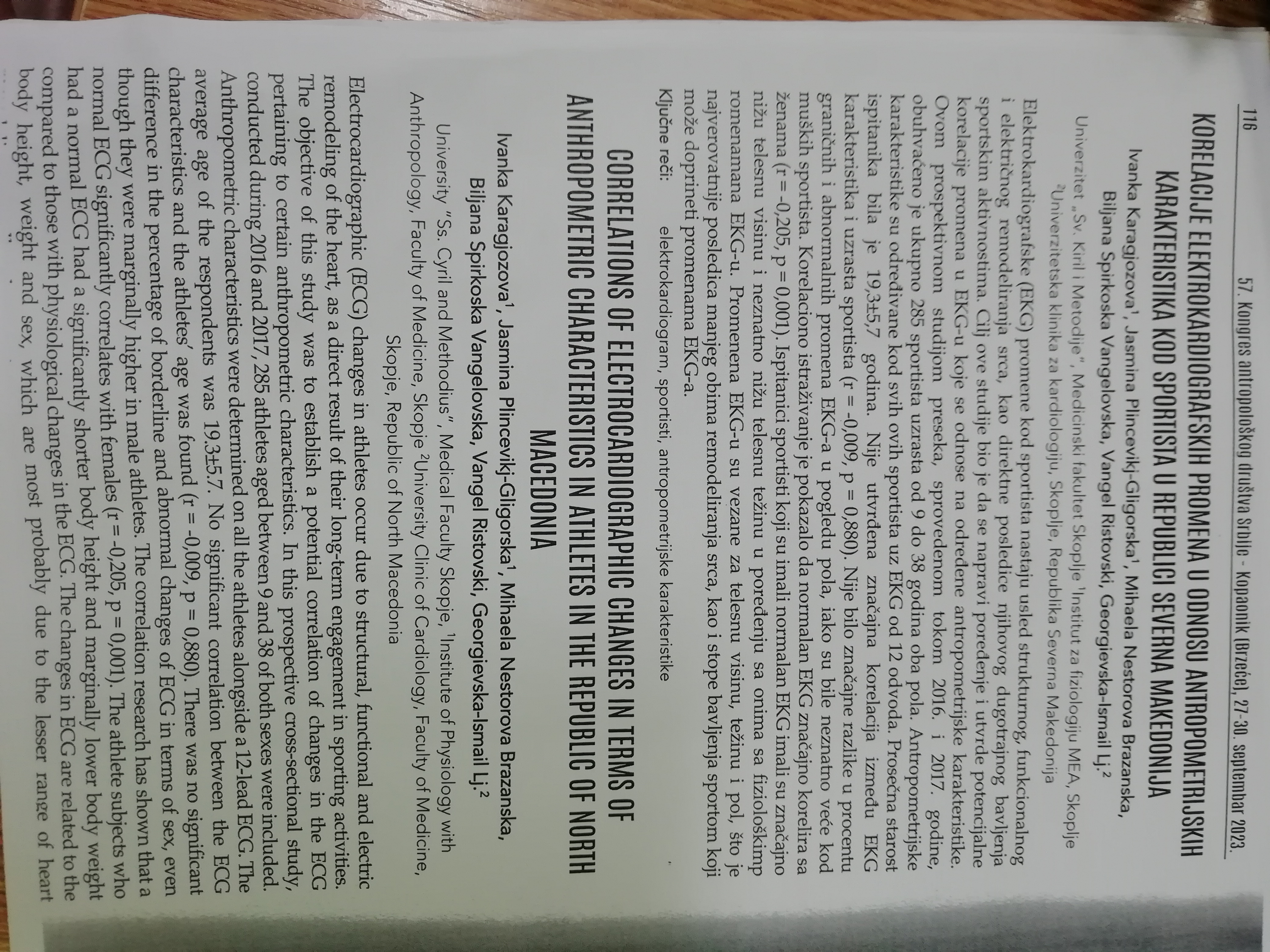 Correlations of electrocardiographic changes in terms of anthropometric characteristics in athletes in the Republic of North Macedonia