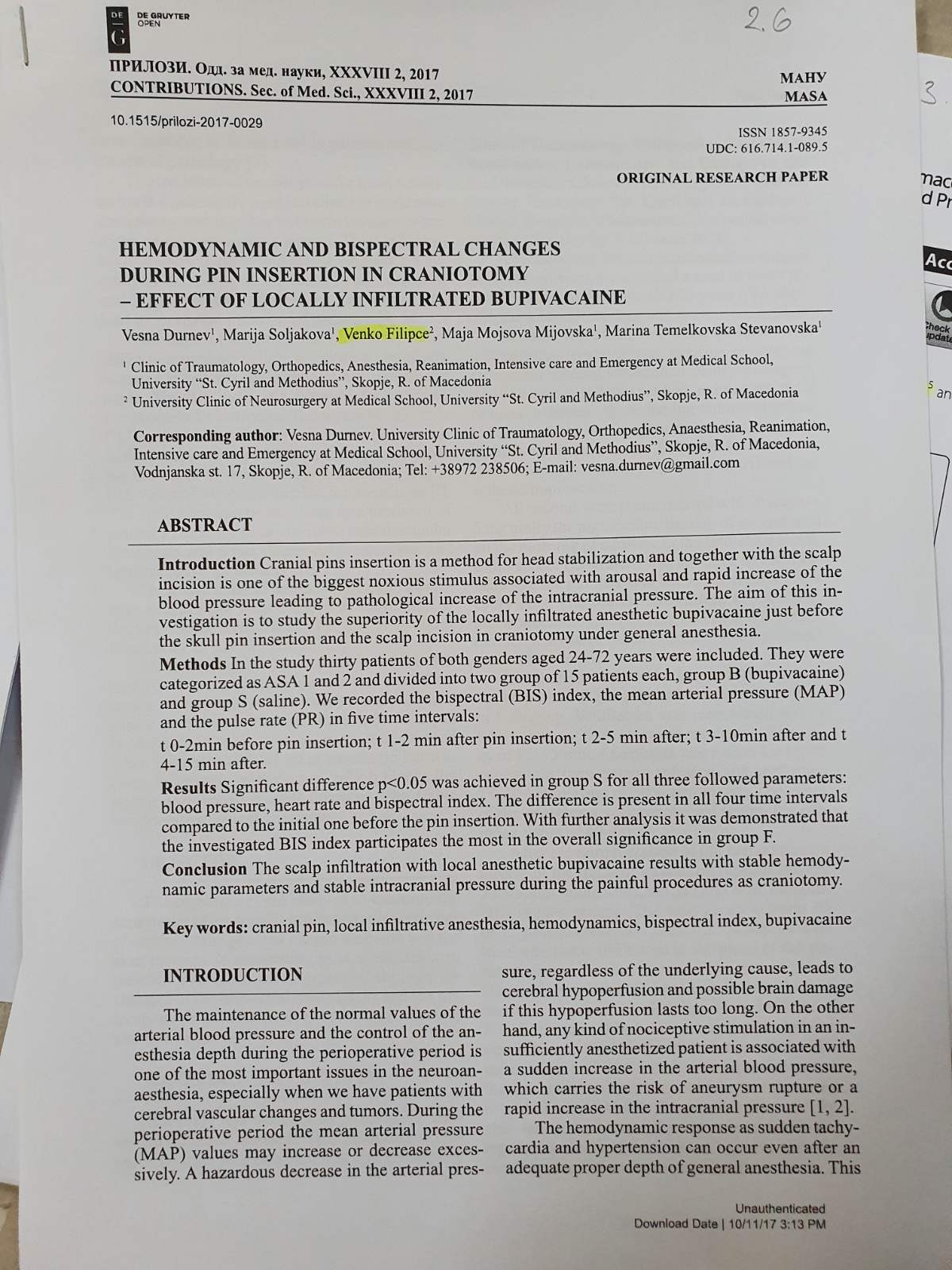 Hemodynamic and bispectral changes during pin insertion in craniotomy - effect of locally infiltrated bupivacaine