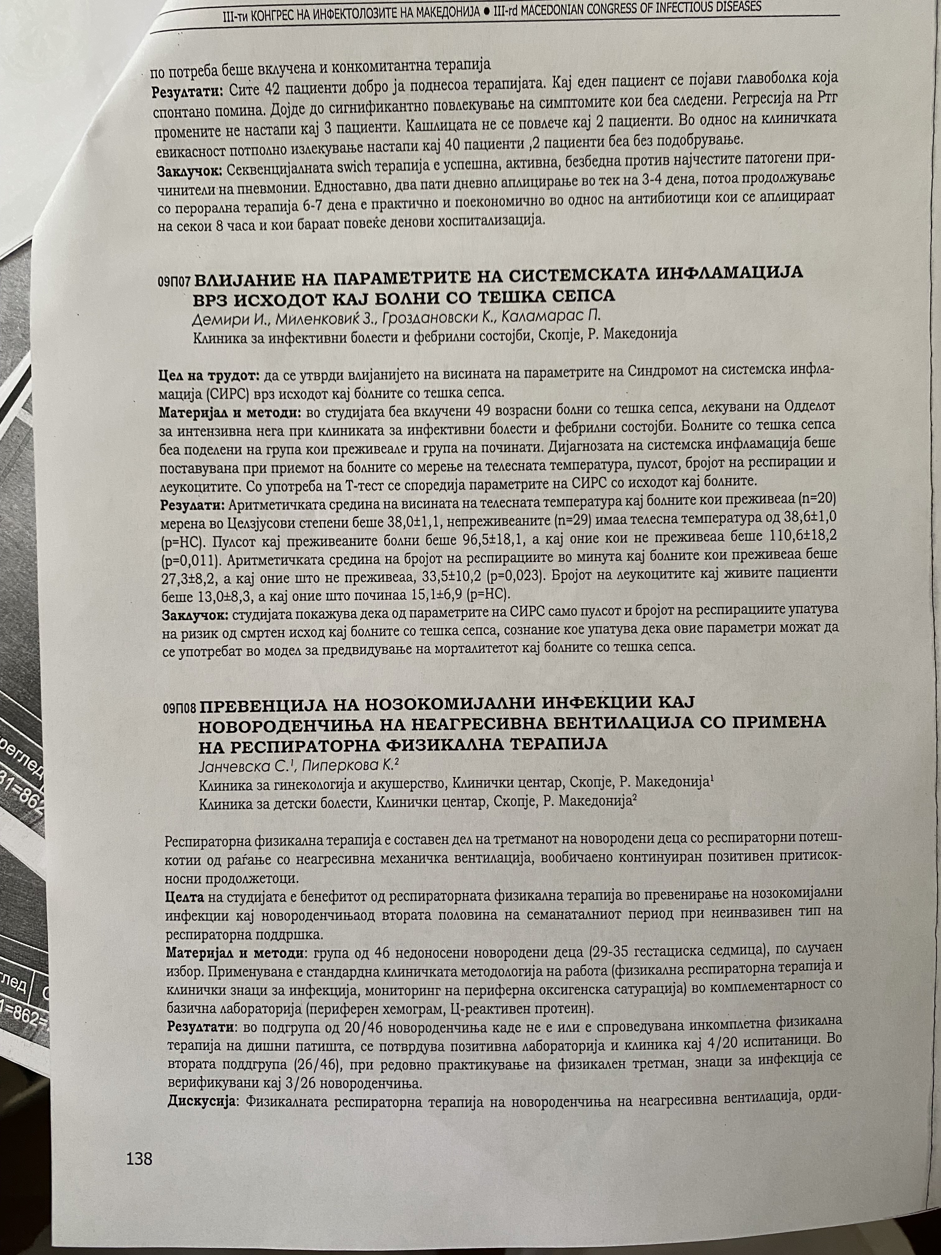 Влијание на параметрите на системската инфламација врз исходот кај болни со тешка сепса