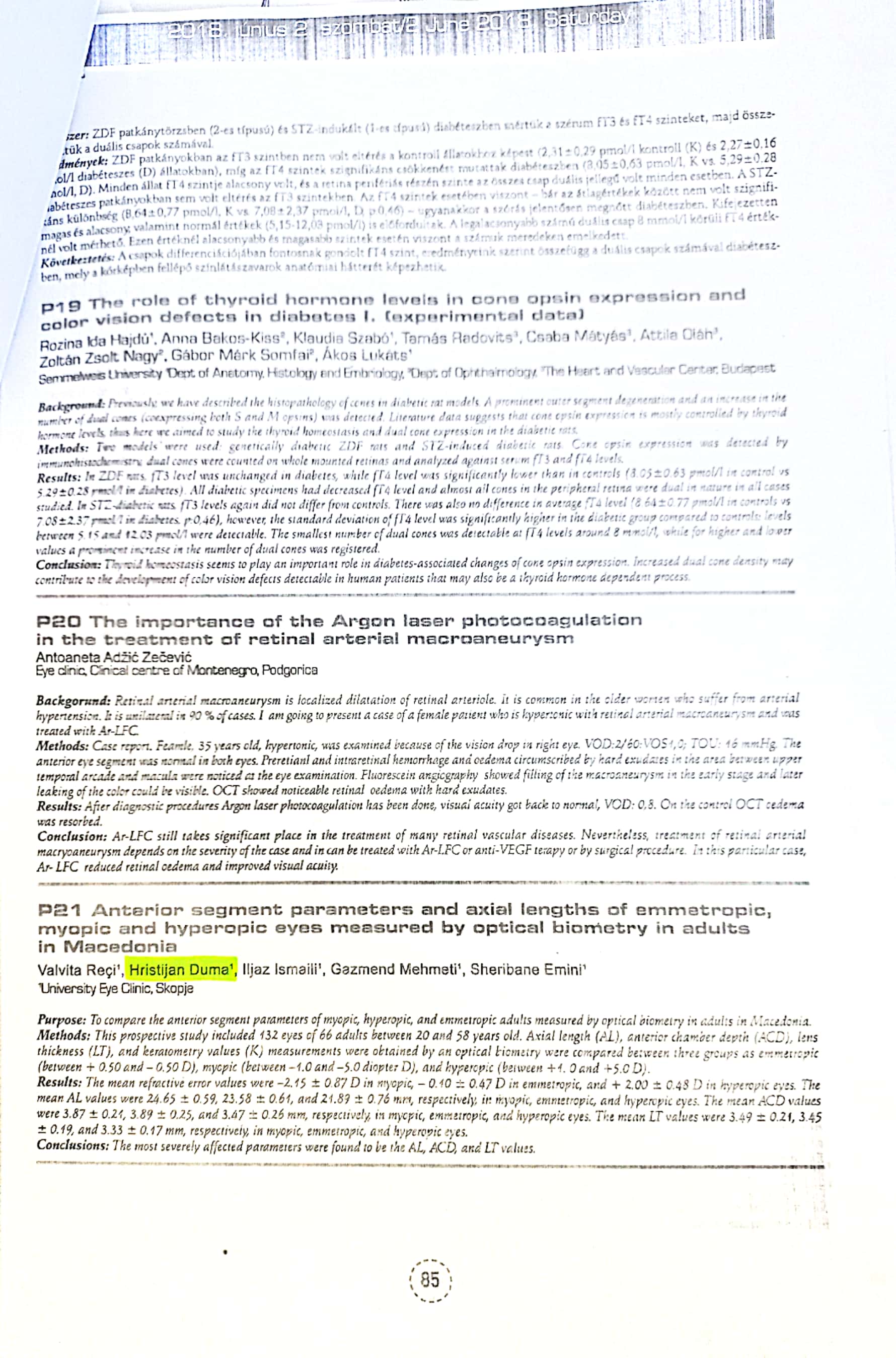 Anterior segment parameters and axial lengths of emmetropic, myopic and hyperopic eyes measured by optical biometry in adults in Macedonia