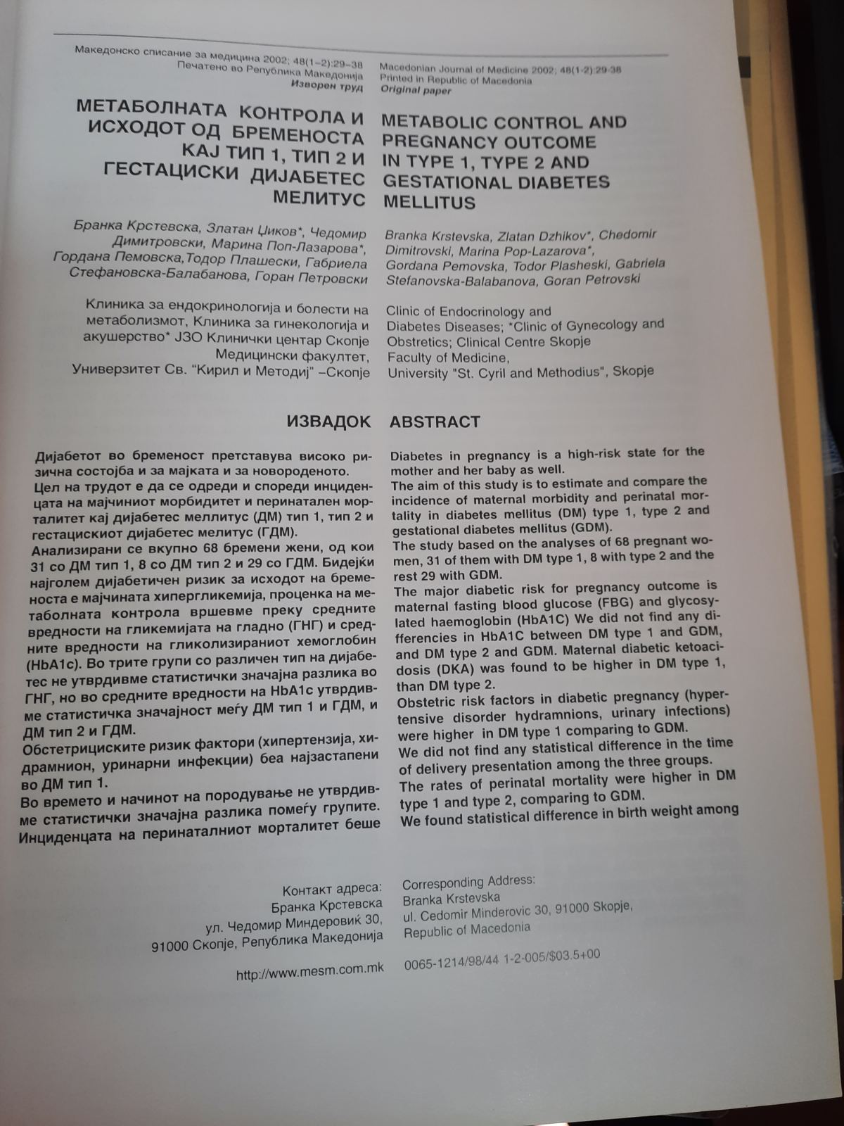 Metabolic Control and Pregnancy Outcome in Type 1, Type 2 and Gestational Diabetes Mallitus