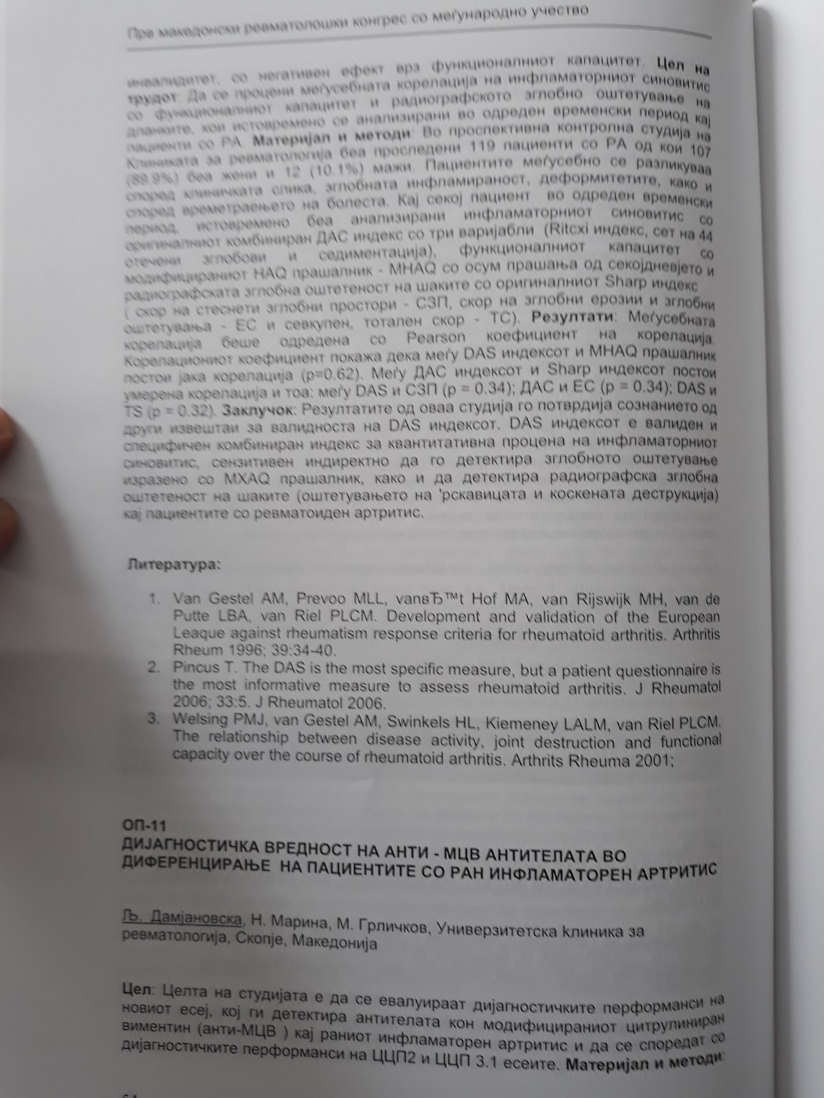Корелација на дас индексот со функционалниот капацитет и scharp радиогравски индекс на дланките кај ревматоидниот артритис