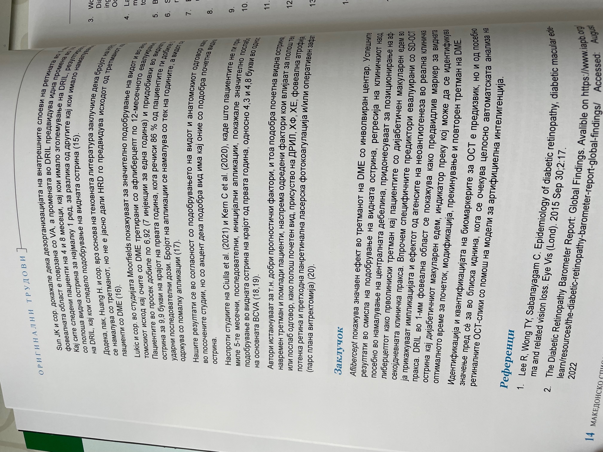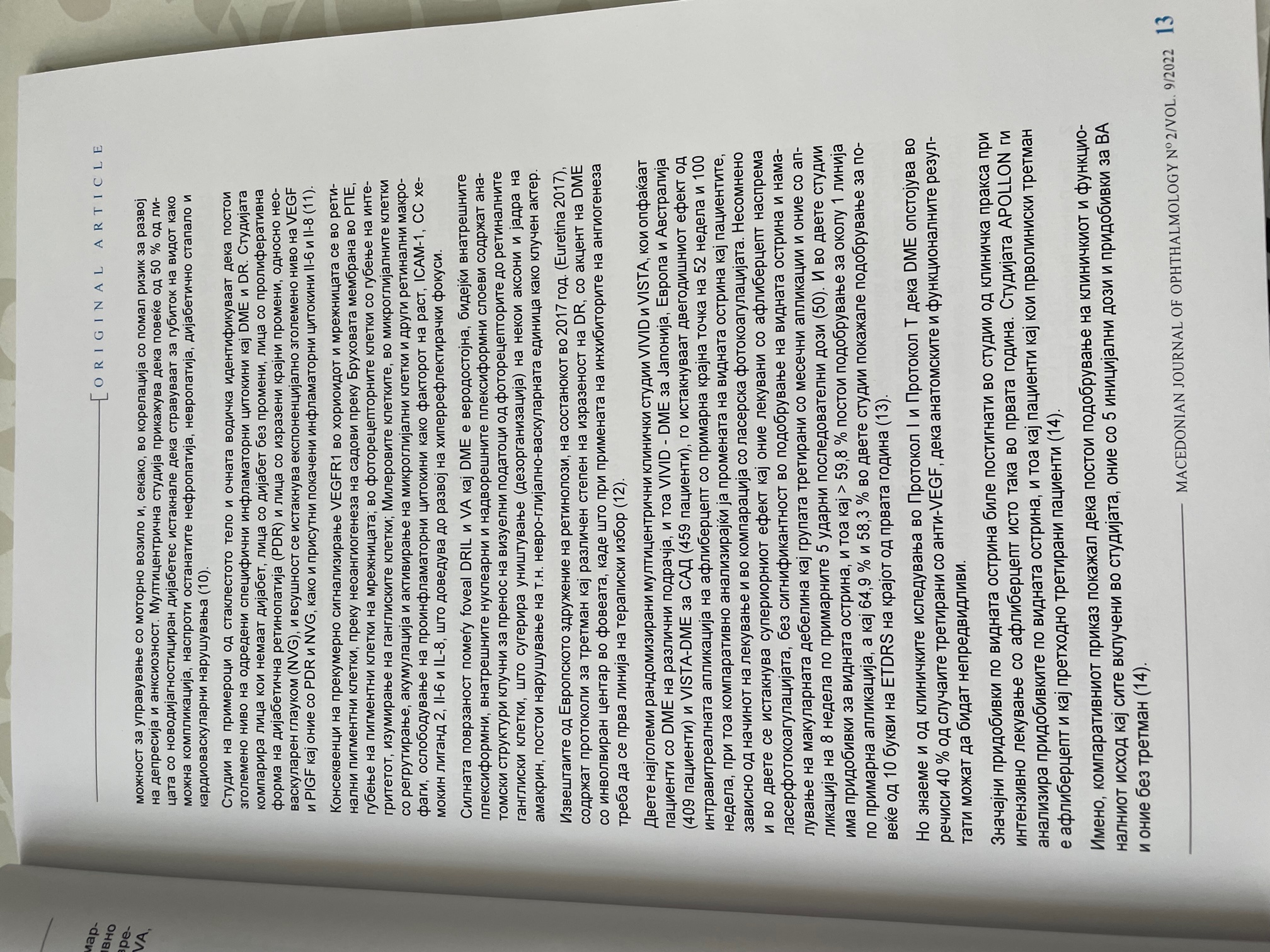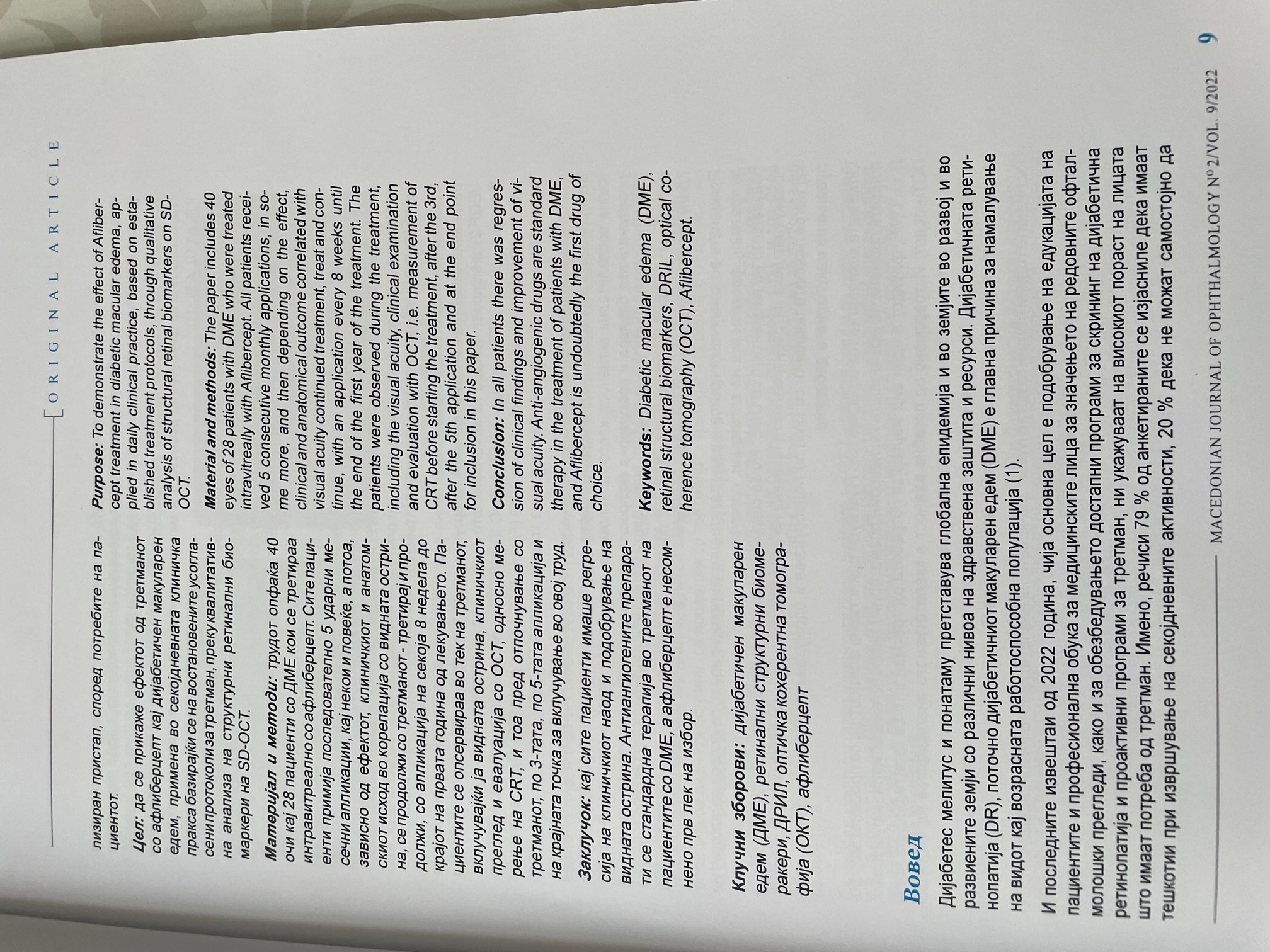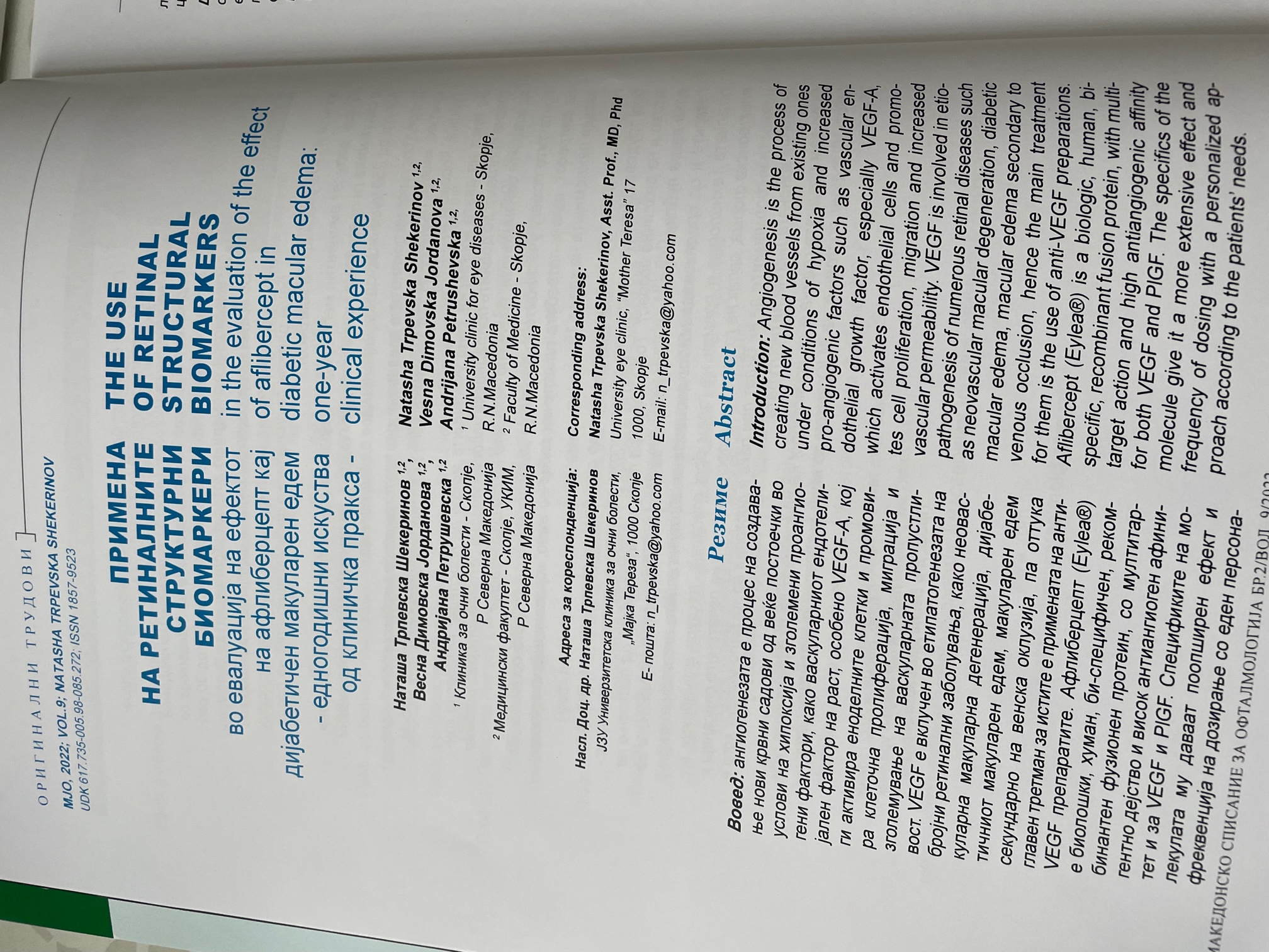 ПРИМЕНА НА РЕТИНАЛНИТЕ СТРУКТКТУРНИ БИОМАРКЕРИ ВО ЕВАЛУАЦИЈА НА ЕФЕКТОТ НА АФЛИБЕРЦЕПТ КАЈ ДИЈАБЕТИЧЕН МАКУЛАЕРЕН ЕДЕМ-едногодишни искуства од клиничка пракса