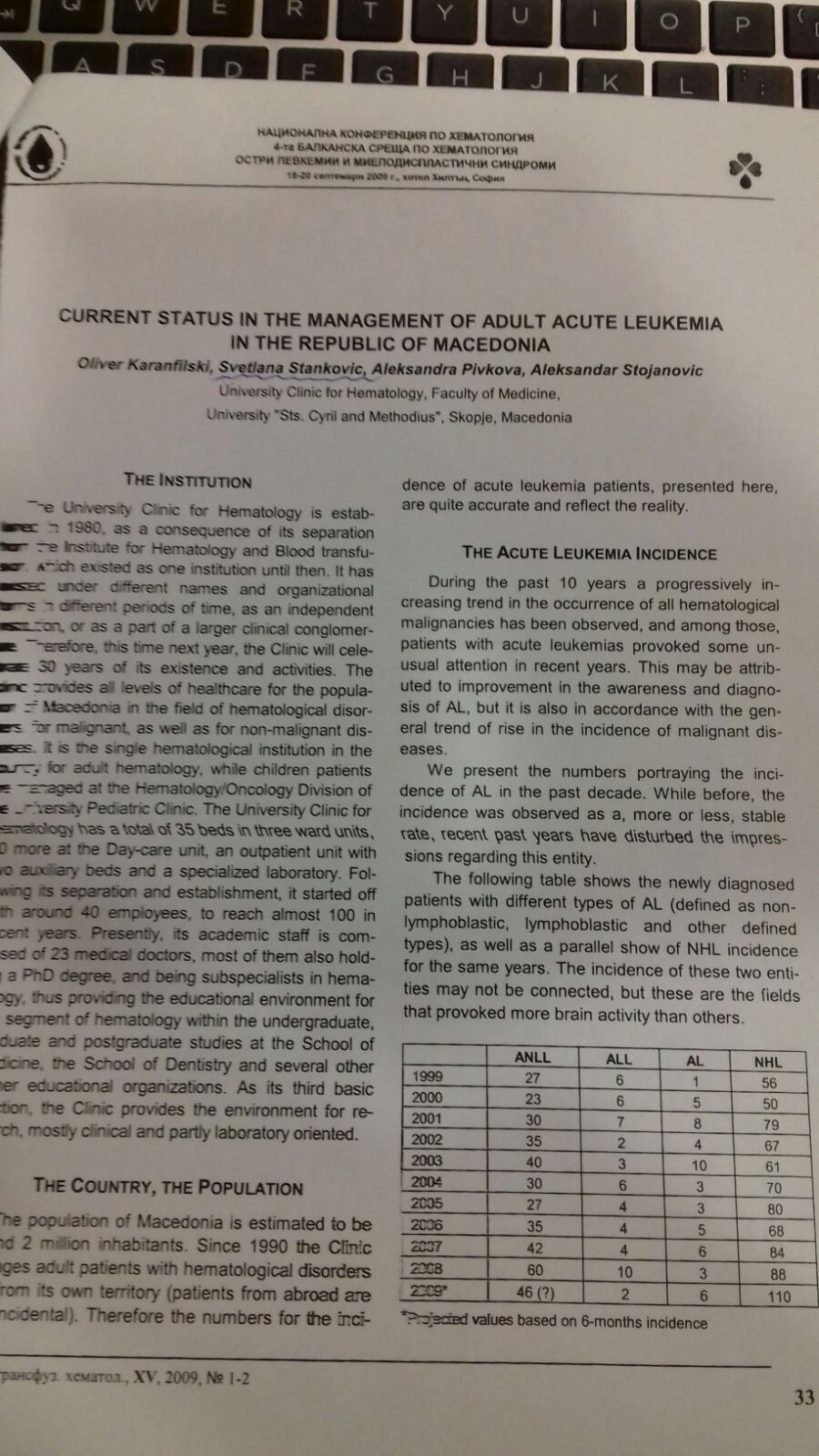 Current status in the management of adult acute leukemia in the Republic of macedonia