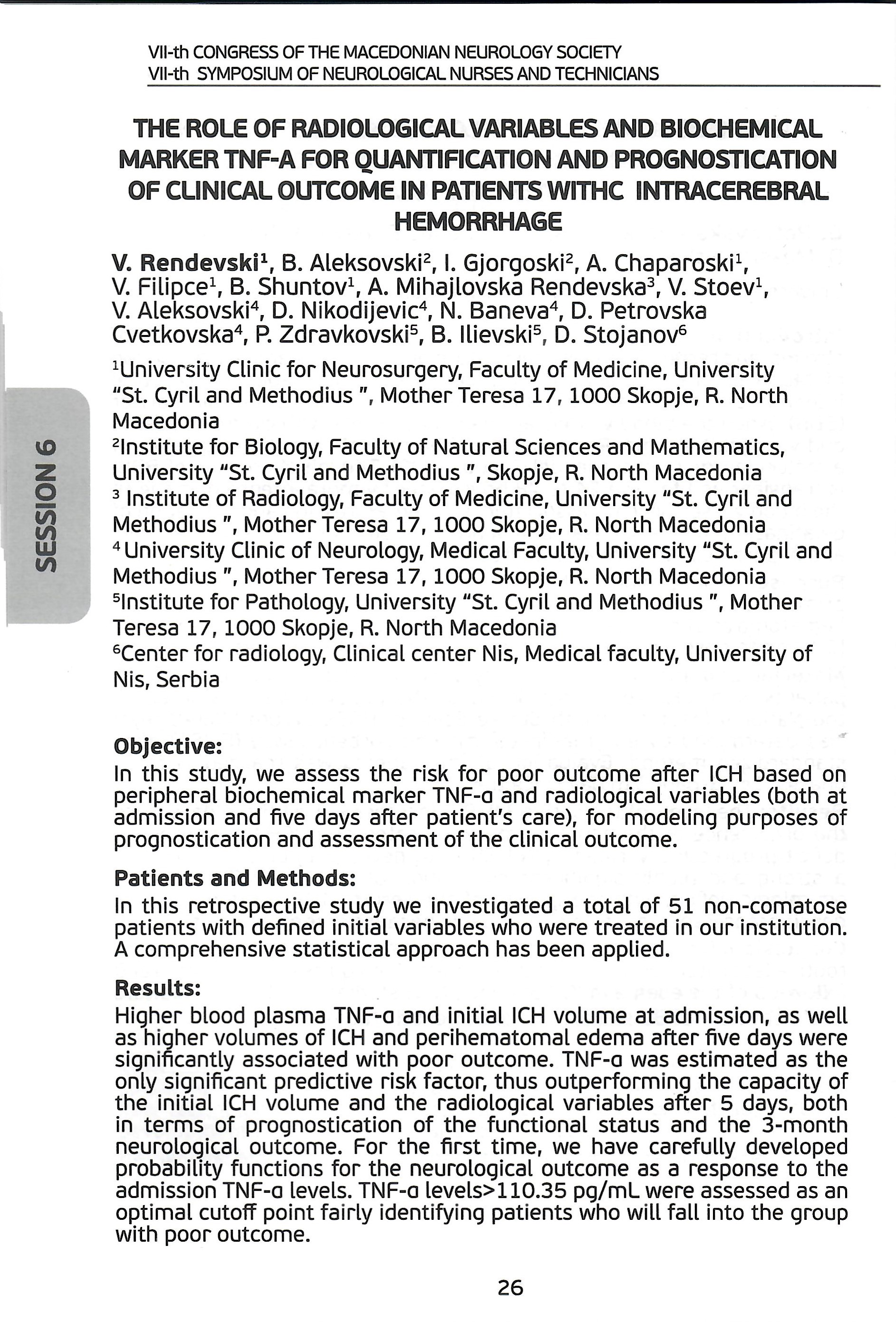 The role of radiological variables and biochemical marker TNF-α for quantification and prognostication of clinical outcome in patients with intracerebral hemorrhage