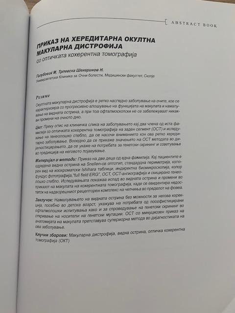 ПРИКАЗ НА ХЕРЕДИТАРНА ОКУЛТНА МАКУЛАРНА ДИСТРОФИЈА СО ОПТИЧКА КОХЕРЕНТНА ТОМОГРАФИЈА