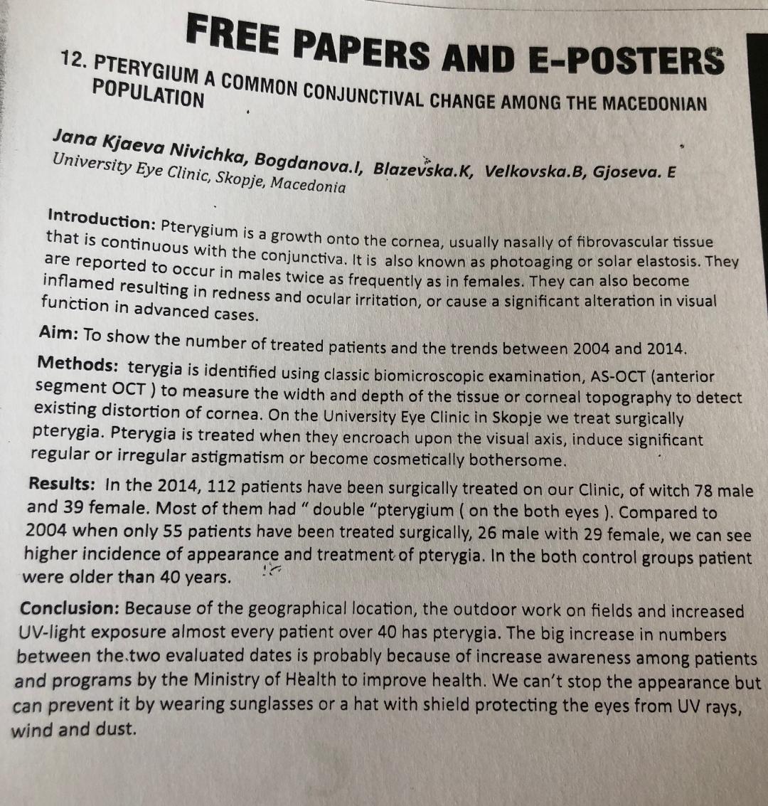 Pterygium a common conjunctival change among the Macedonian population