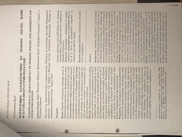 Морфолошки карактеристики на Demodex Species, наши искуства и литературни податоци