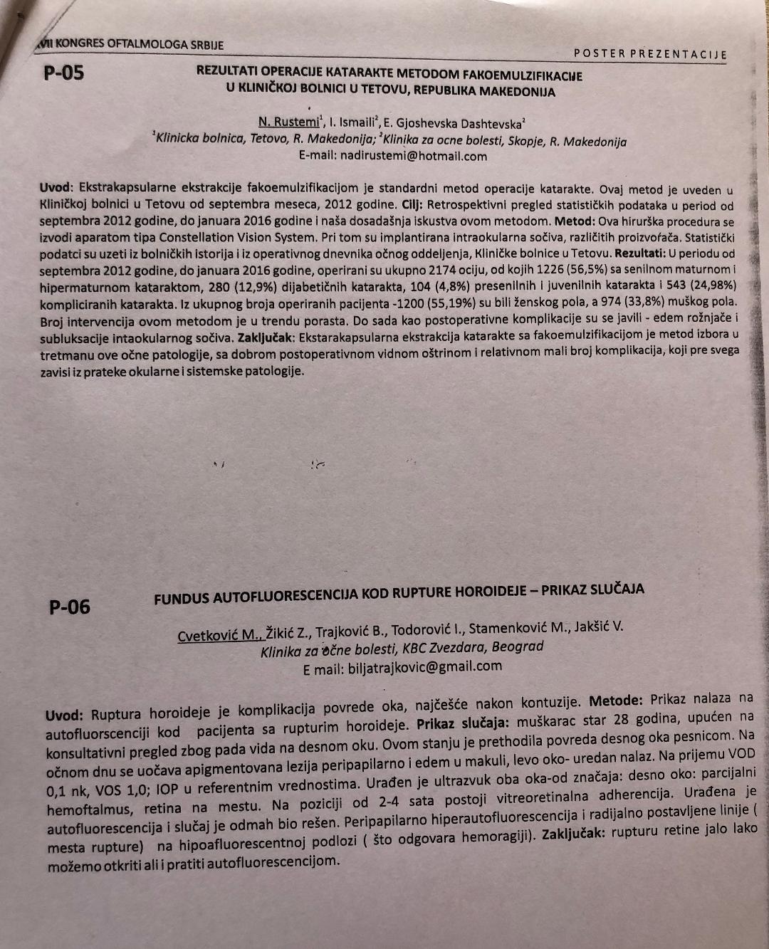 Rezultati operacije katarakte metodom fakoemulzifikacije u Klinickoj bolnici u Tetovu, Republika Makedonija