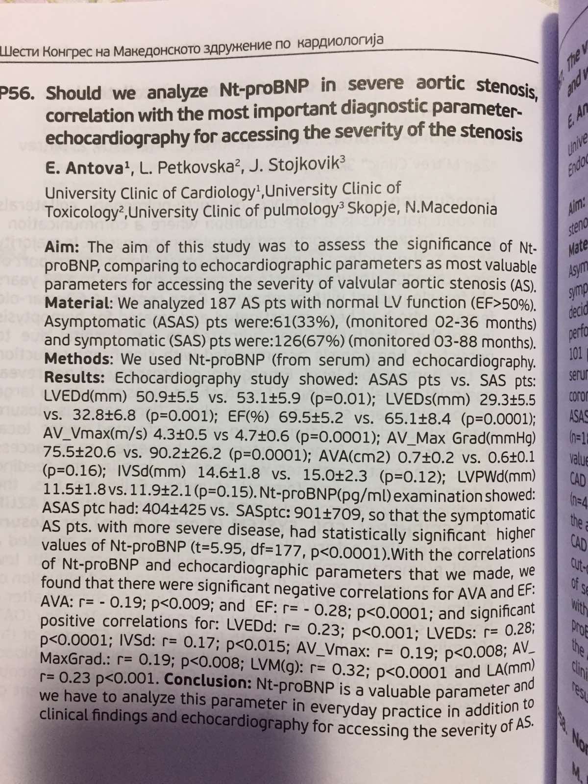 Should we analyze Nt-proBNP i severe aortic stenosis, corelation with the most important diagnosisi parametar-echocardiography for accessing the severity of the stenosis